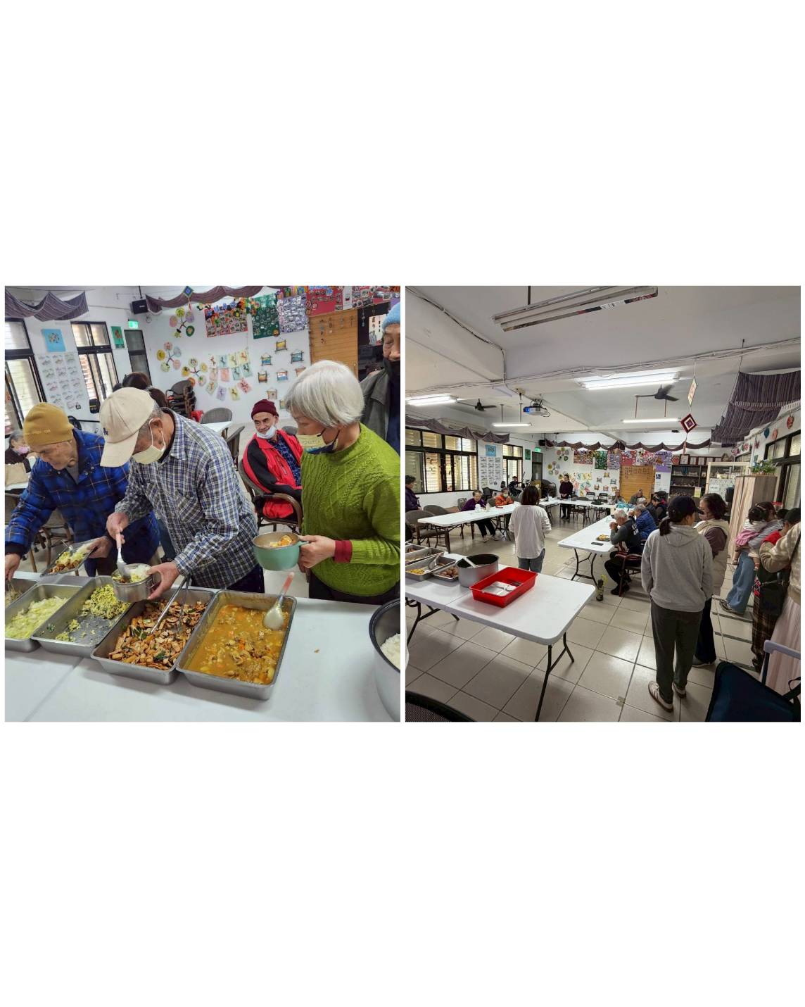 用餐時間一到,長者們圍坐在一起,一邊吃飯、一邊聊天,氣氛輕鬆而溫馨。看到大家自在地用餐,偶爾分享生活中的點滴,整個空間都充滿了熱鬧與笑聲,也讓人感受到煮餐不只是準備食物,更是一種陪伴。