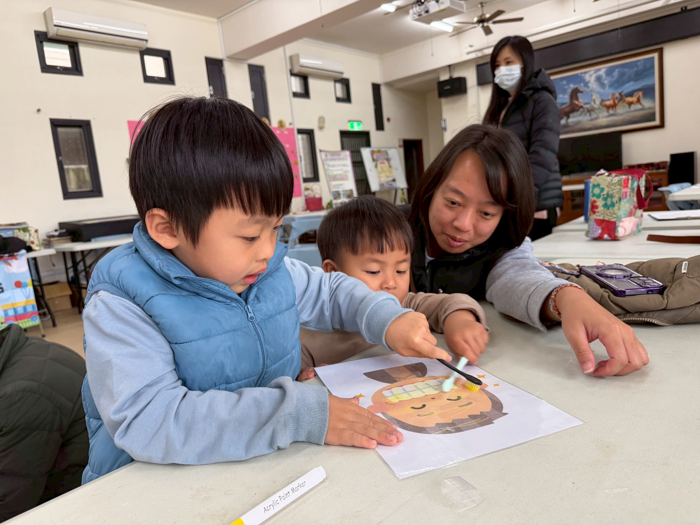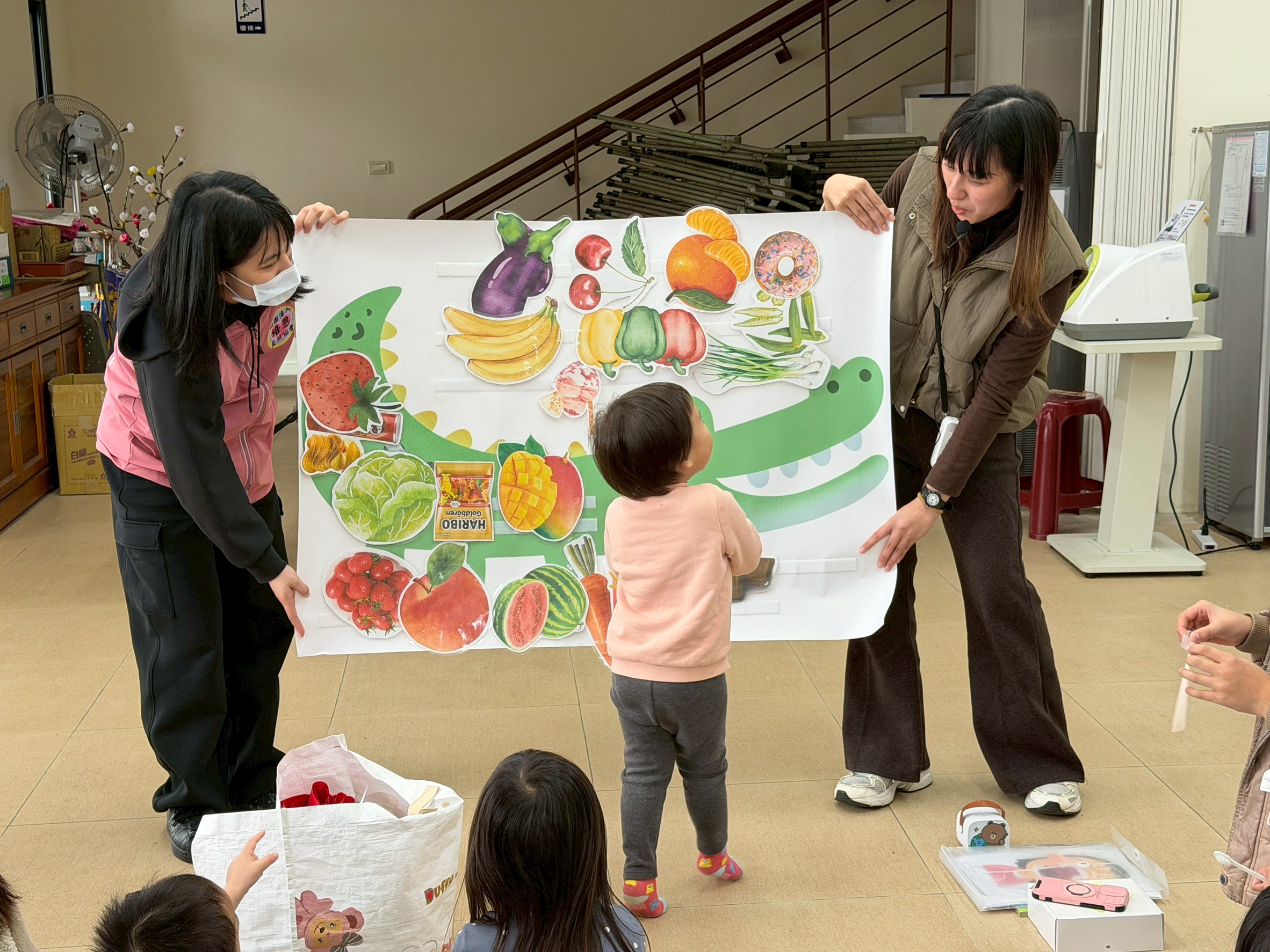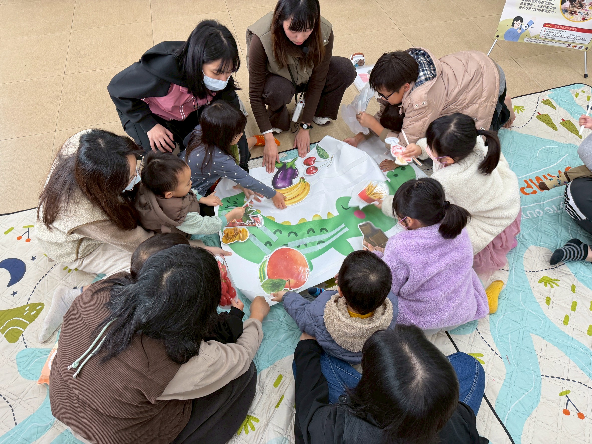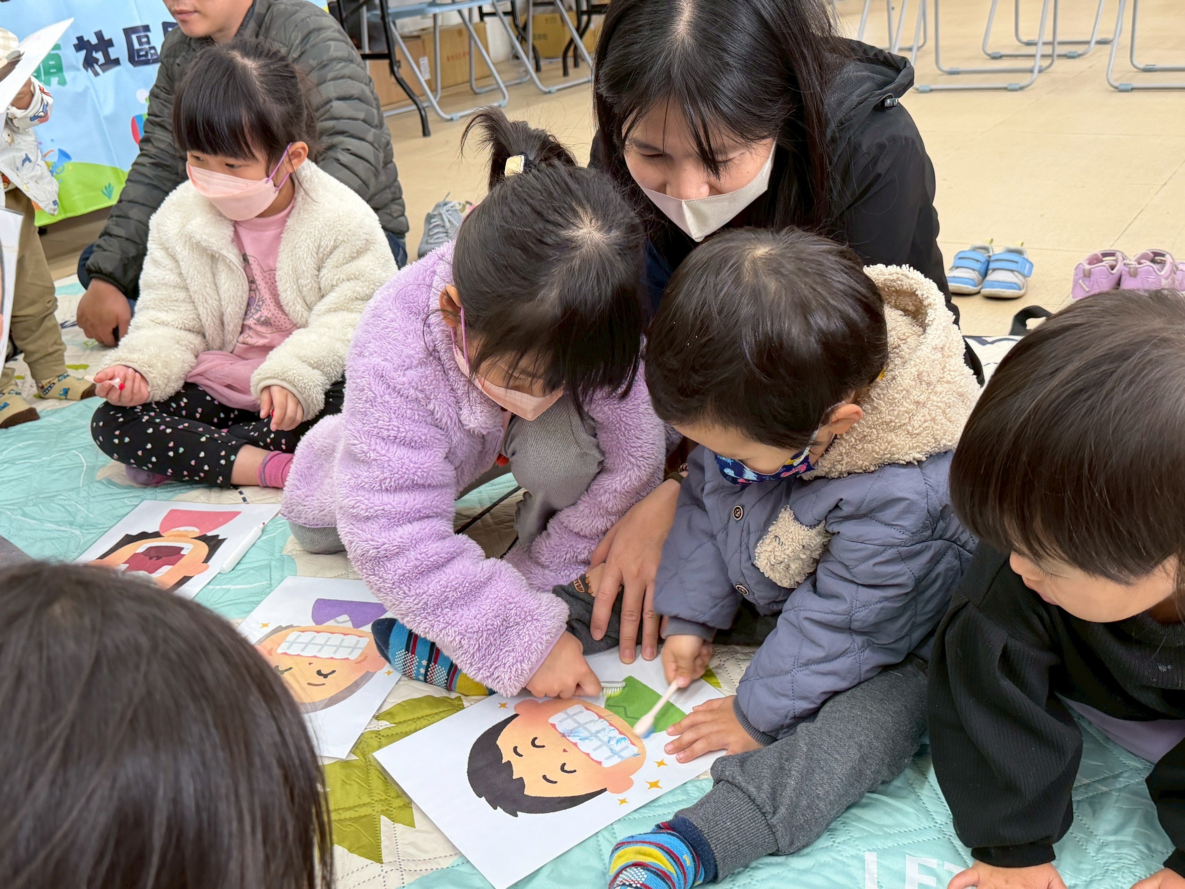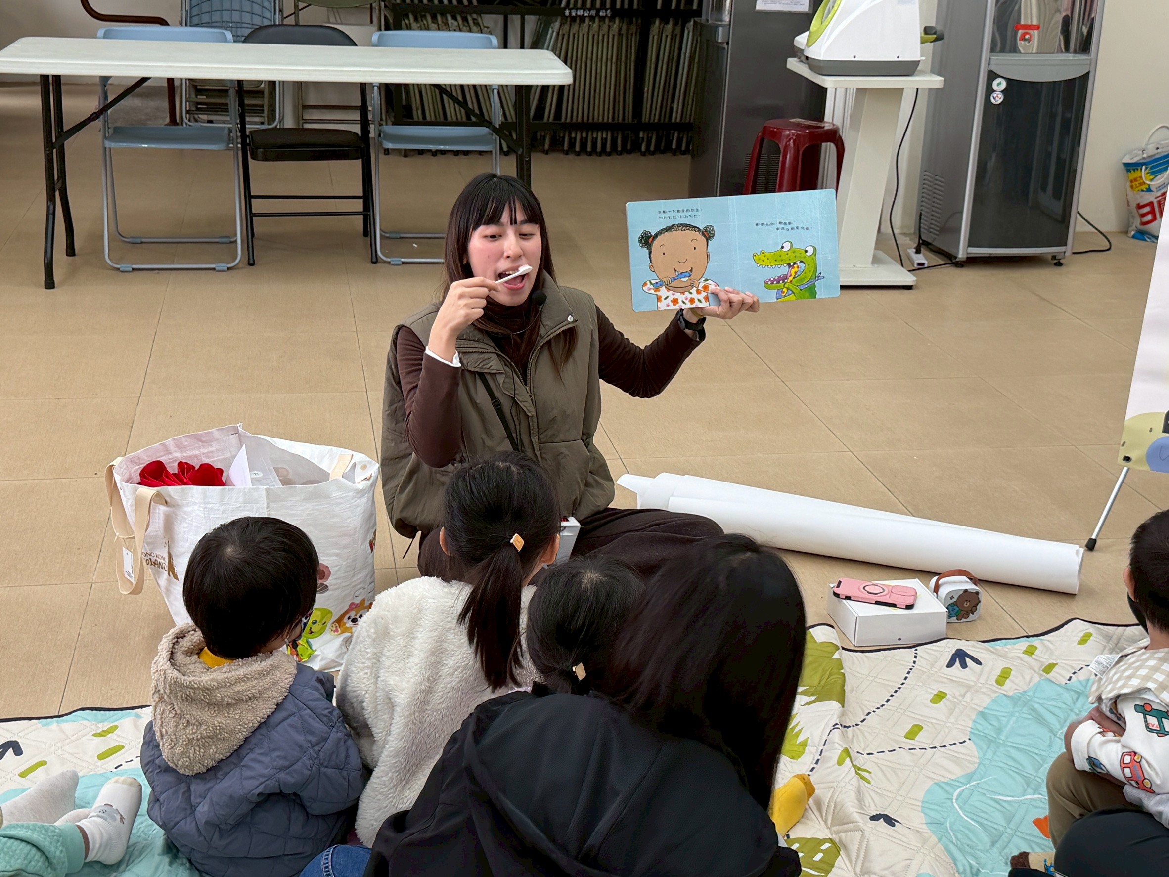 新年度開始,萌萌行動療育車1月28日前往吉安稻香社區出任務,希希老師與在場的小朋友一起共讀「帶著你的小鱷魚刷牙」繪本,即使是吃東西會發出「喀啦、喀啦」有尖牙的小鱷魚,也是要一步一步做好潔牙,才能有閃亮亮的自信笑容,並帶領著小朋友模擬刷牙及認識友善飲食等互動小遊戲,建立良好健康觀念從小做起。