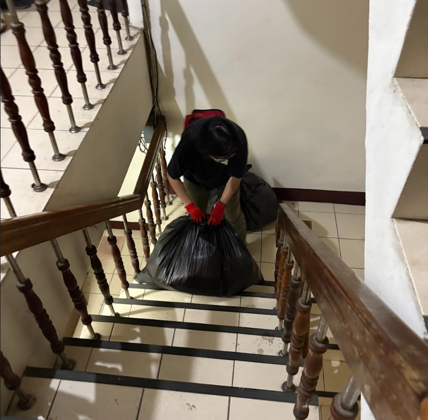 ▲ 小黑賣力搬運垃圾下樓的身影。