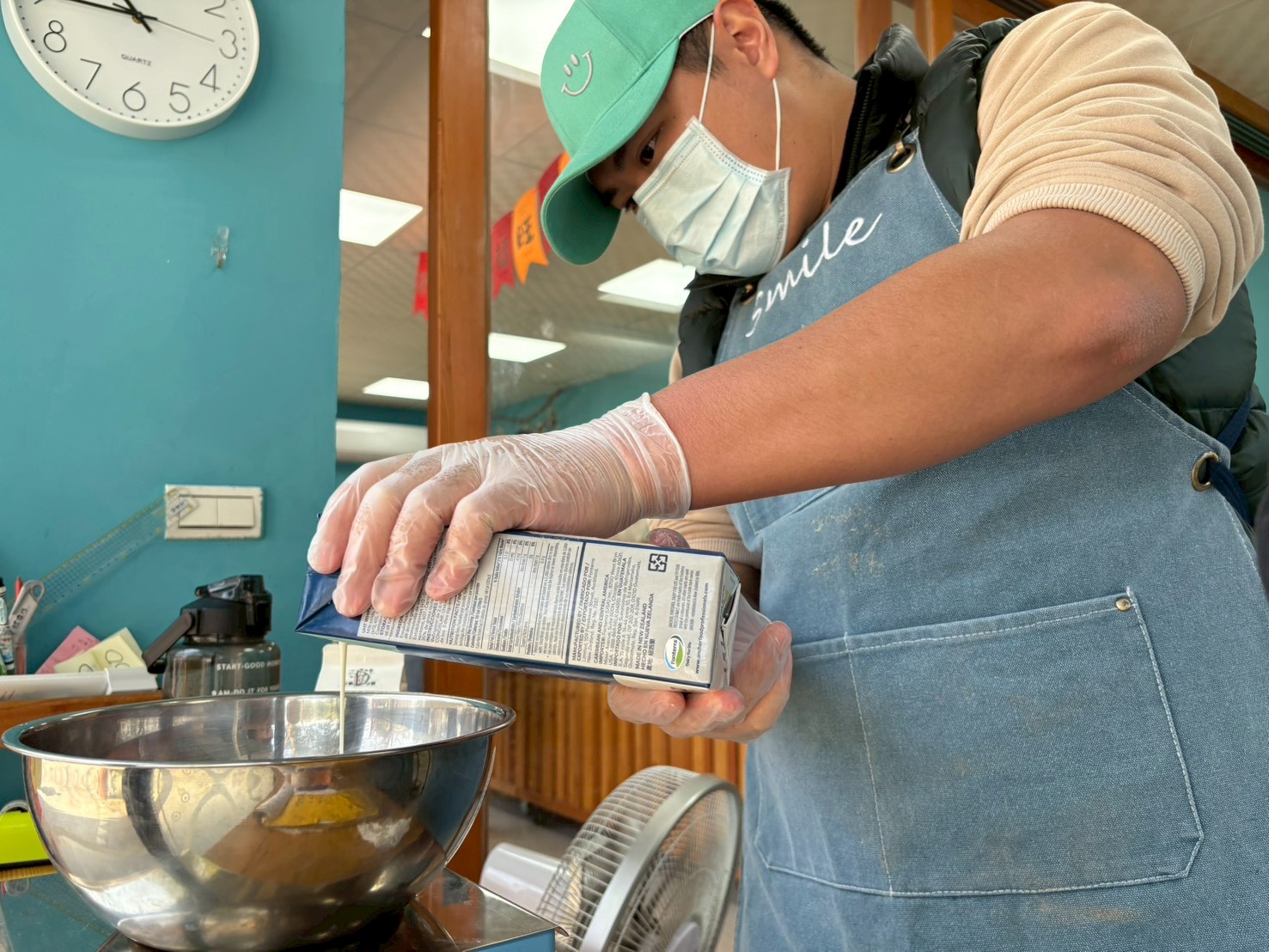 1.烘培作業:猜猜看~我們在做什麼呢?沒錯,就是我們的熱銷商品可可燕麥雜糧餅乾,還有每日限量的蛋塔~