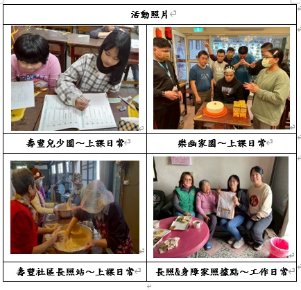 二、壽豐社區長照站本月工作說明: