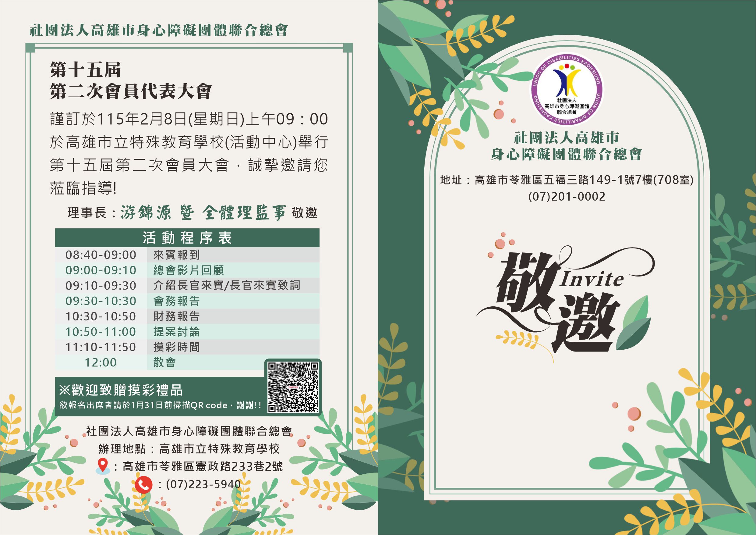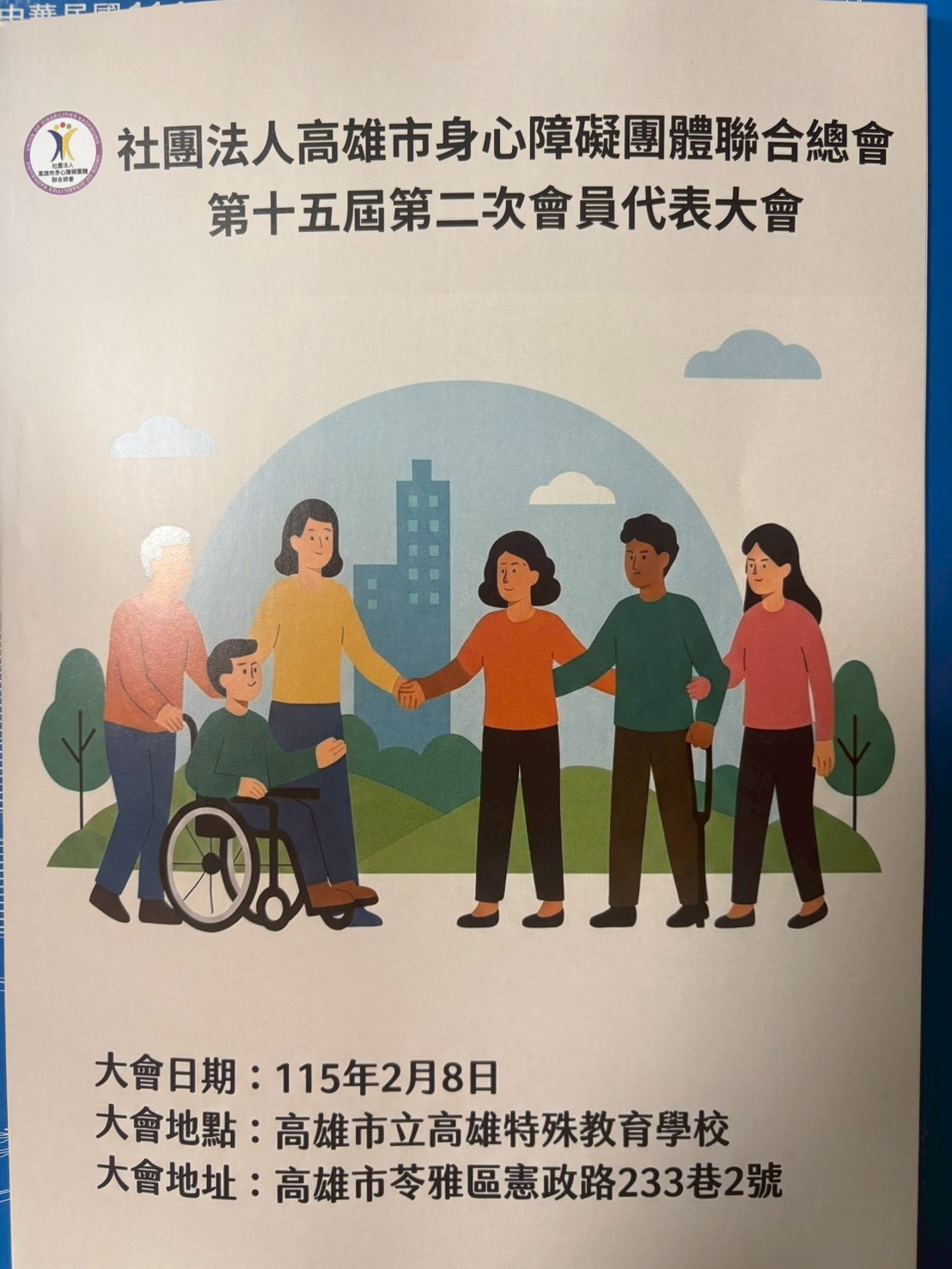 首先是身障總會第十五屆本年度的會員代表大會於2/8(日)登場,場地是借用高雄市立特殊教育學校的大禮堂舉辦,本次沒有理監事改選,所以重點放在114年的會務與財務執行報告,並頒發顧問感謝狀,最後邀請會員代表現場提案。