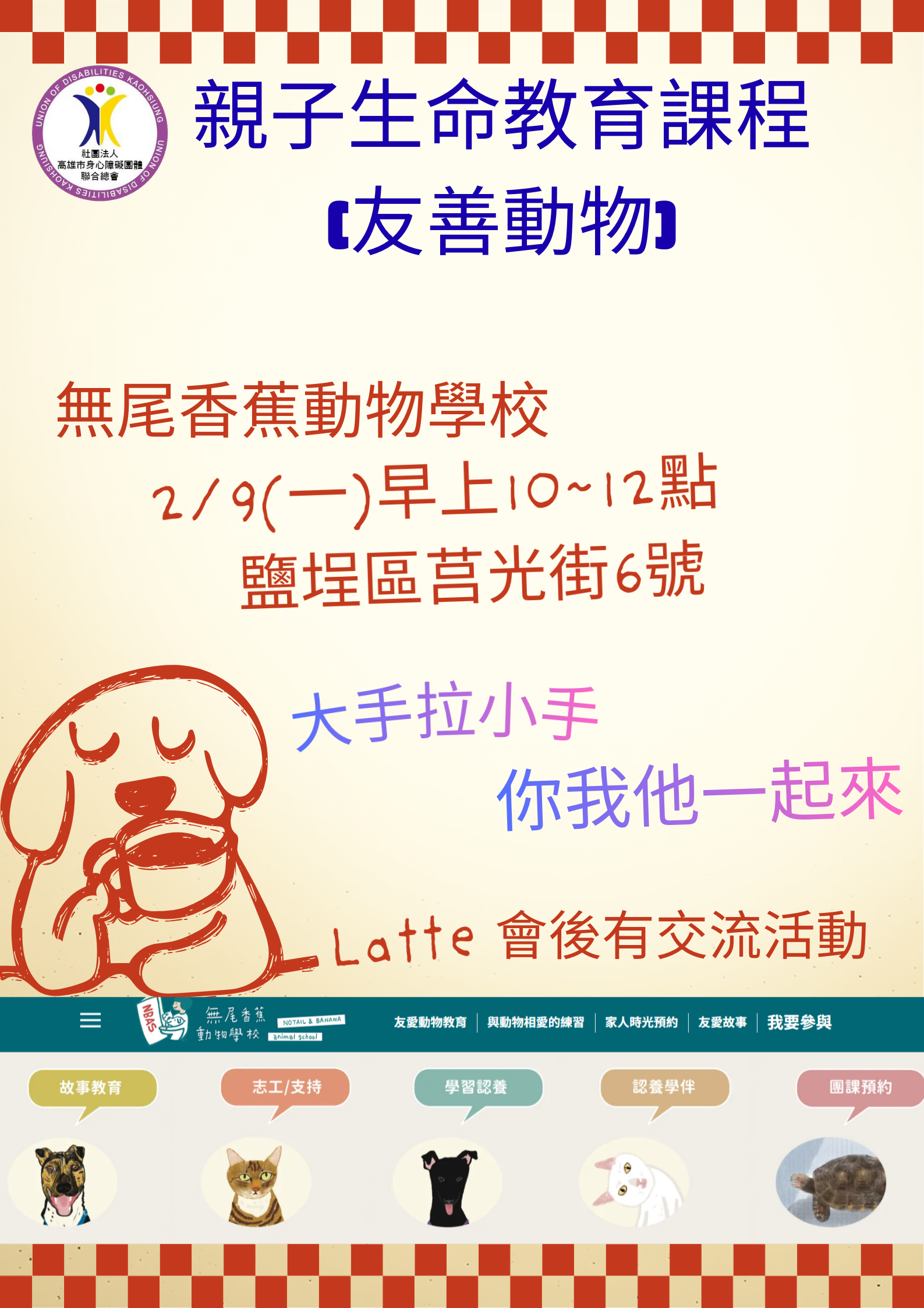 本課程係邀請11個家庭計24個親子到高雄鹽埕區的無尾香蕉動物學校,透過灰灰動物協會的專業講師帶領兒童讀繪本,引導親子一起走進小主人與貓咪的世界,教導孩子認識生命的珍貴與多樣,並藉由故事中小主人翁的角色與情節,陪伴孩子建立同理心、尊重與照顧的重要觀念,學習以溫柔態度對待動物與他人。