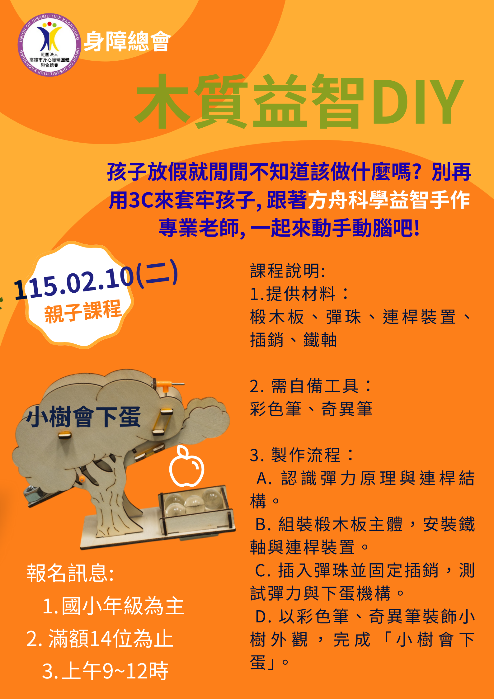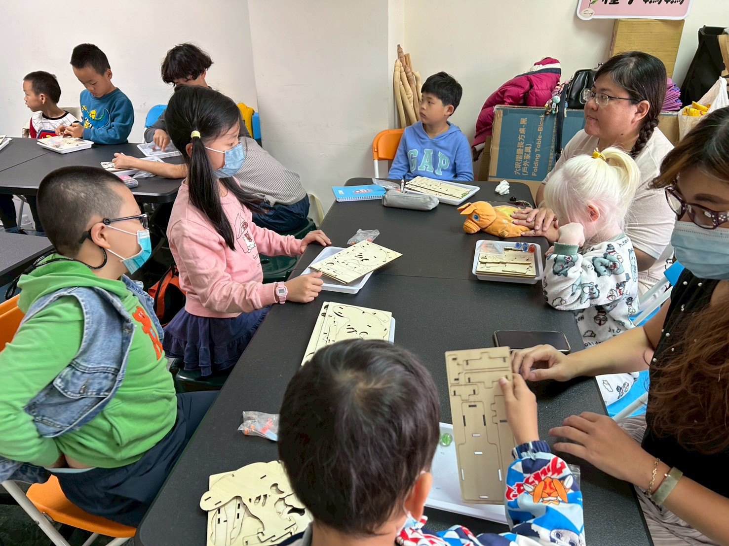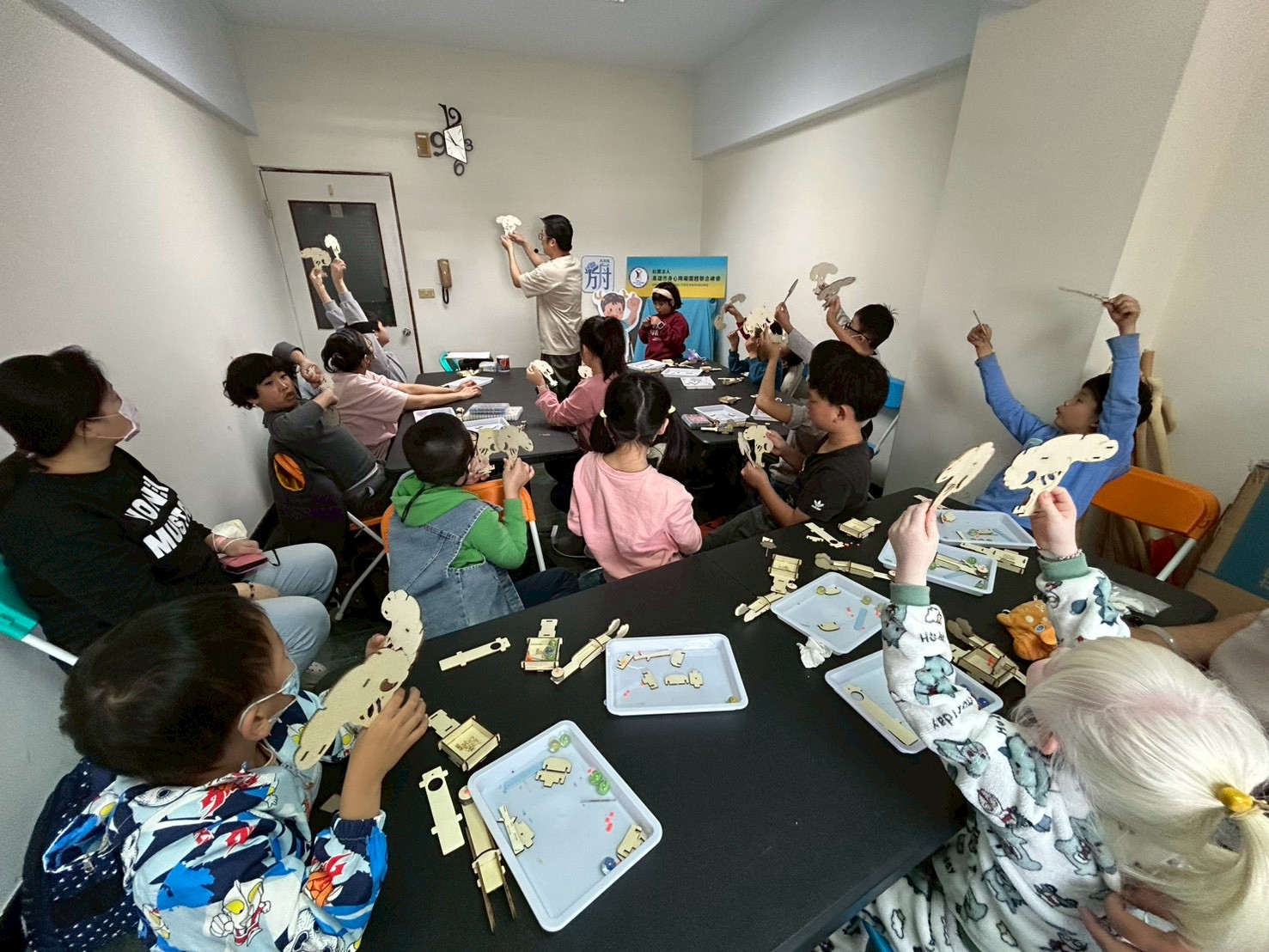 總會邀請方舟科學團隊來開課,採用木片材料包為主軸,透過親子共同參與,引導小朋友在老師清楚的步驟指引下,專心聆聽、按序操作,培養專注力與注意力,讓孩子在拼接、組裝與細部調整過程中,反覆練習手部小肌肉與手眼協調能力,提升操作穩定度與耐心。