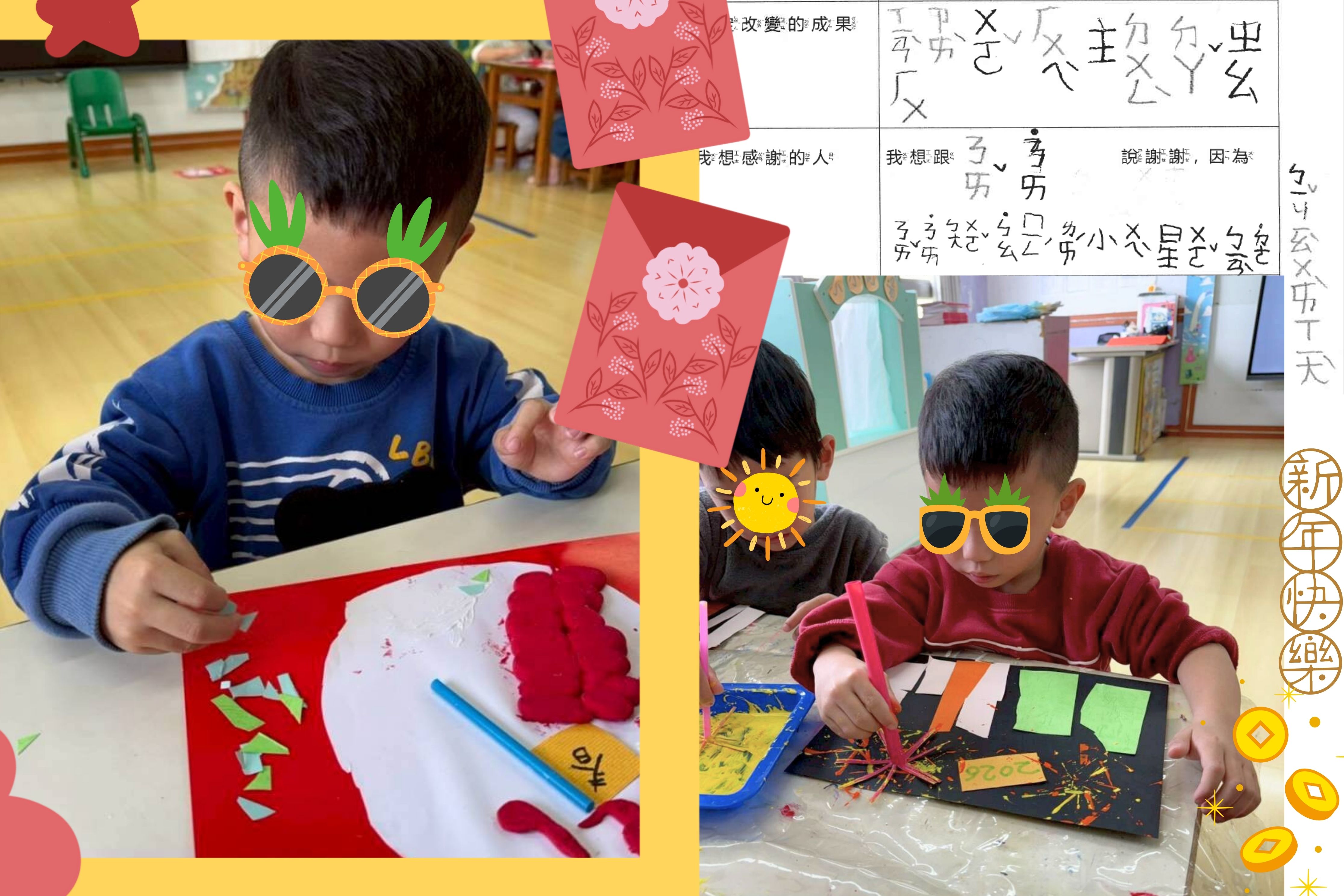 在此藉著孩子用心製作迎春的卡片,恭賀大家新春愉快,馬上吃飽,馬上健康,馬上幸福,馬上順利!