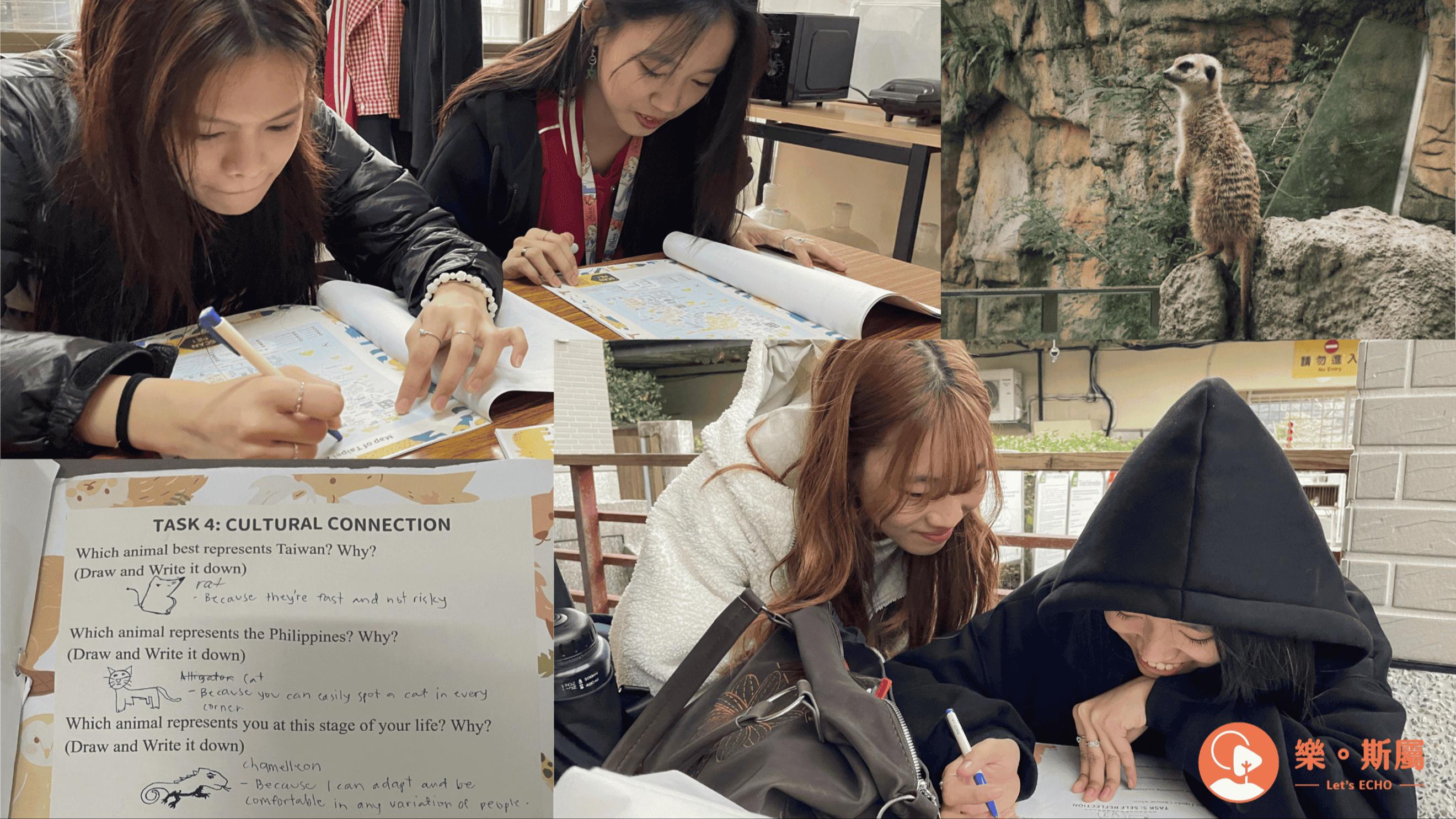 也要進行中文練習,訪問這天來動物園走春的人們,和從動物中選擇與台灣、菲律賓和自己最相似的那一個。