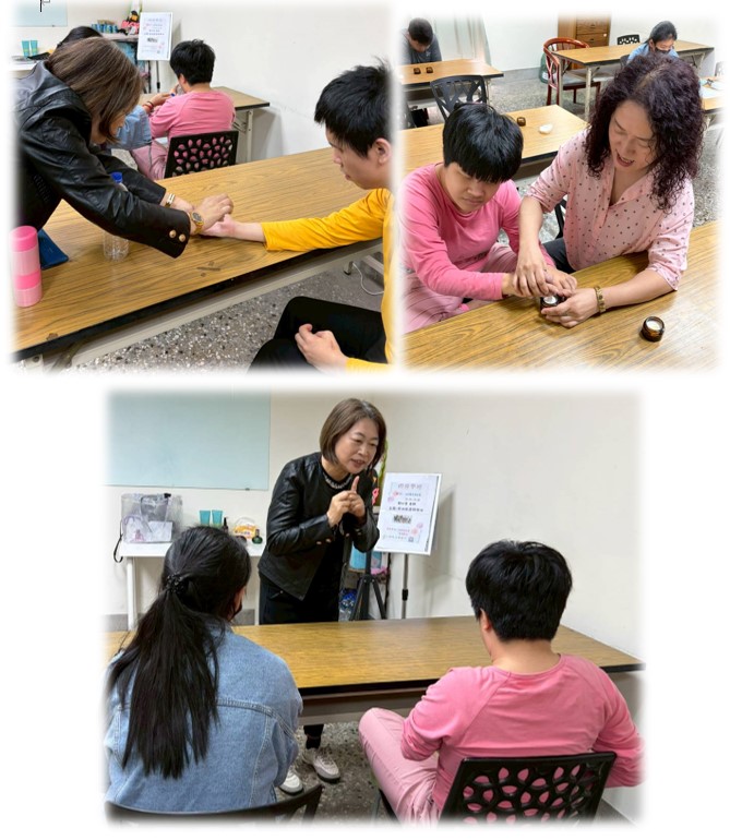 先聞一聞不同香味,並在老師的引導下,感受著每個按摩的觸覺都充滿著紓壓、