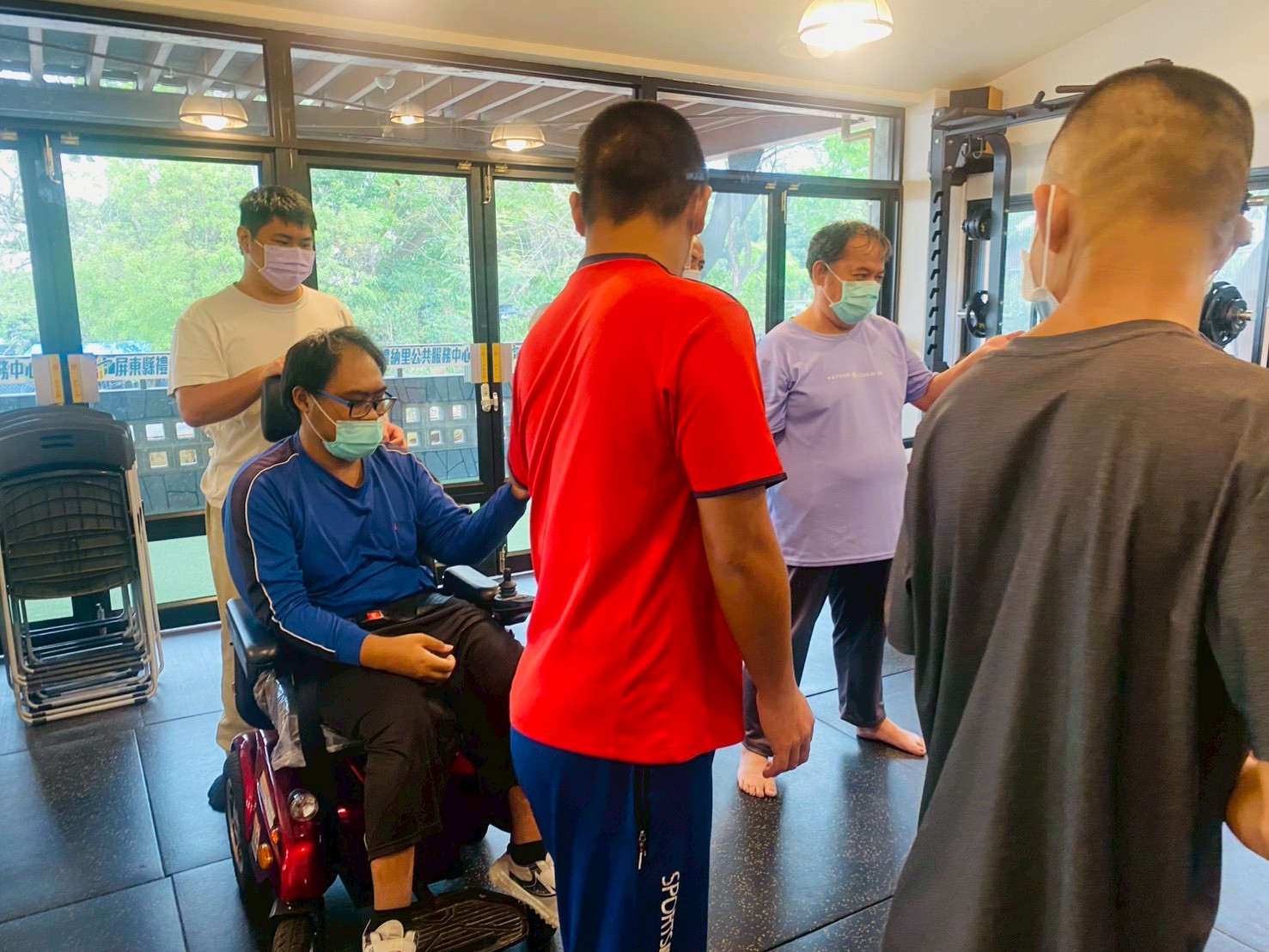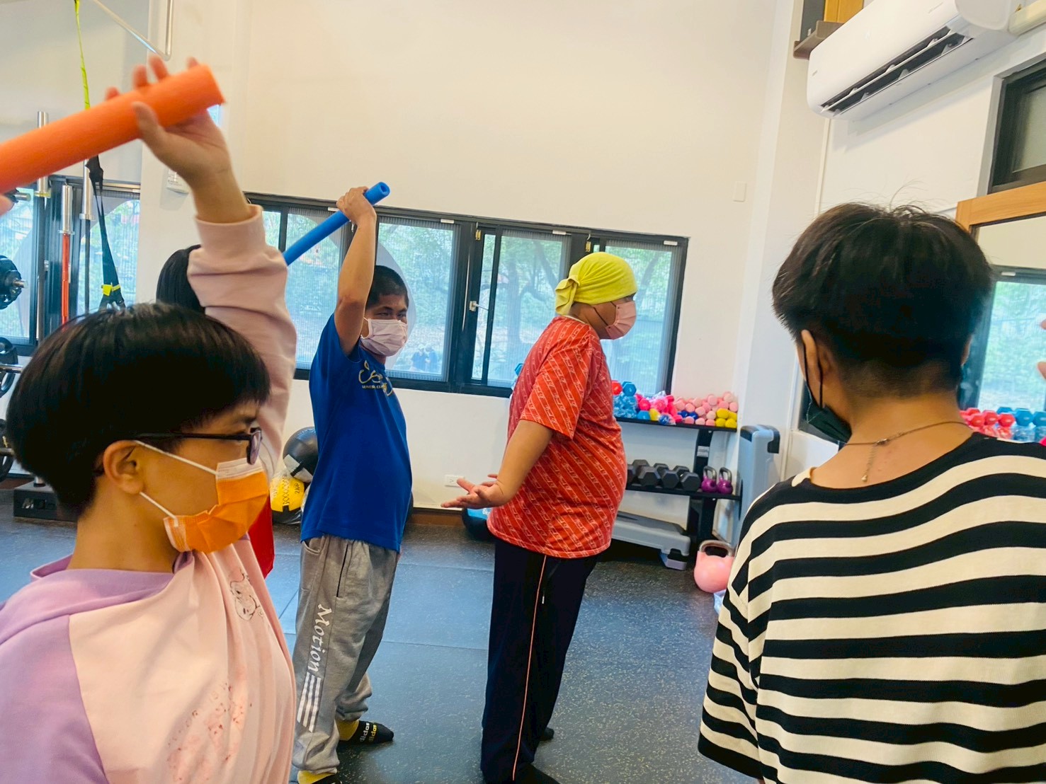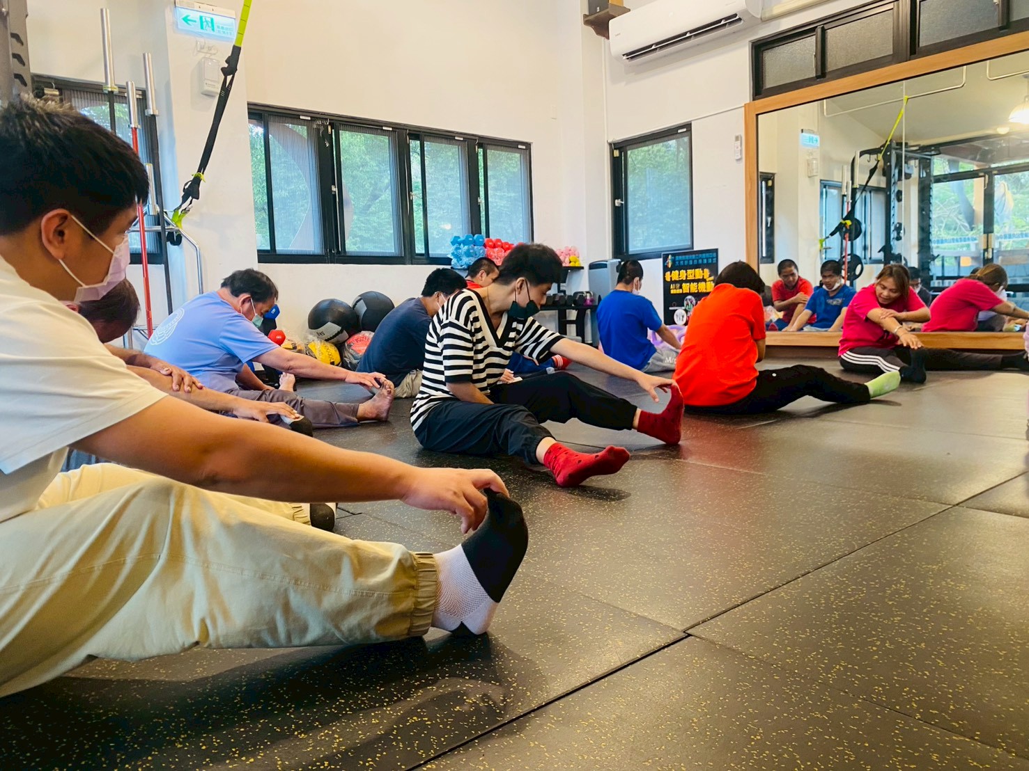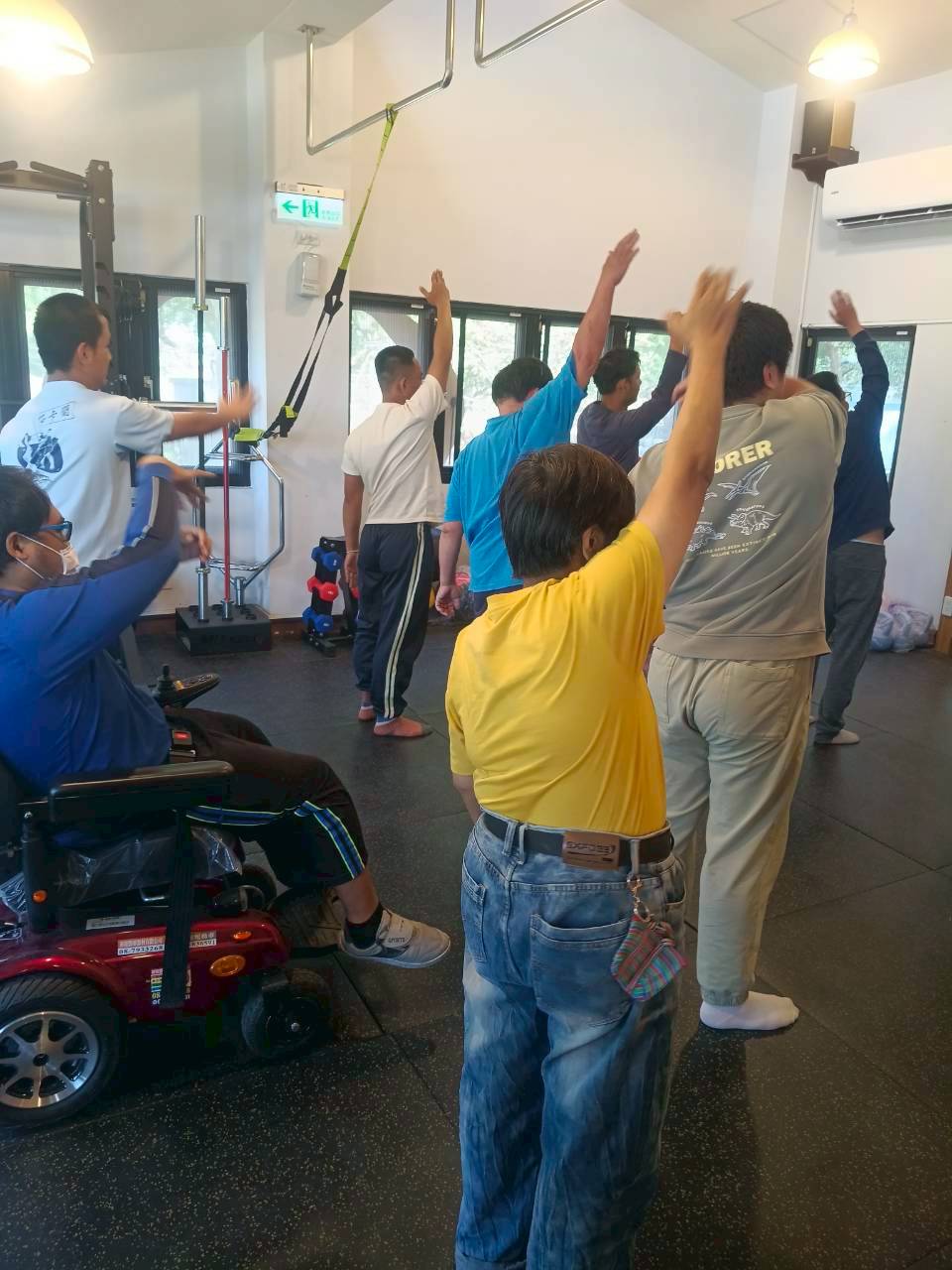 四、資源連結--外聘課程:每個月特地請外聘老師帶服務使用者運動、伸展,也和夥伴們打打鬧鬧的玩樂~開心!