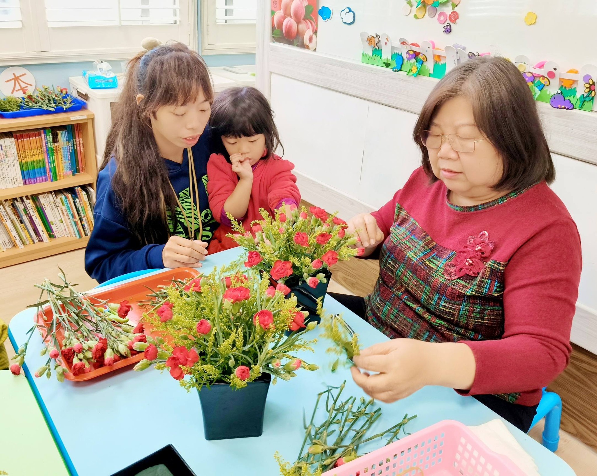 花藝設計課程,小朋友一起動手體驗花藝設計,一盆盆充滿生命力的小花藝就誕生了。