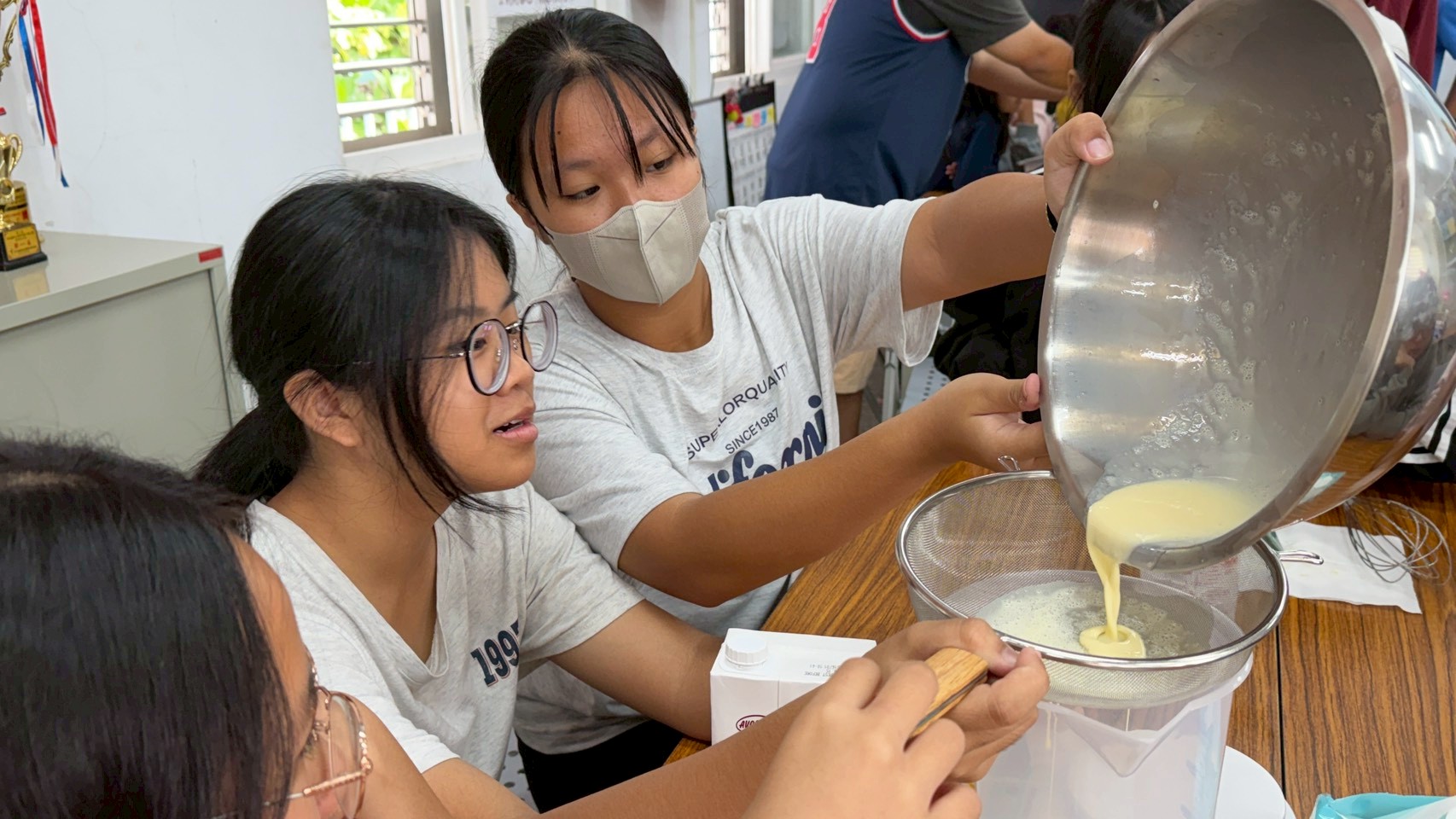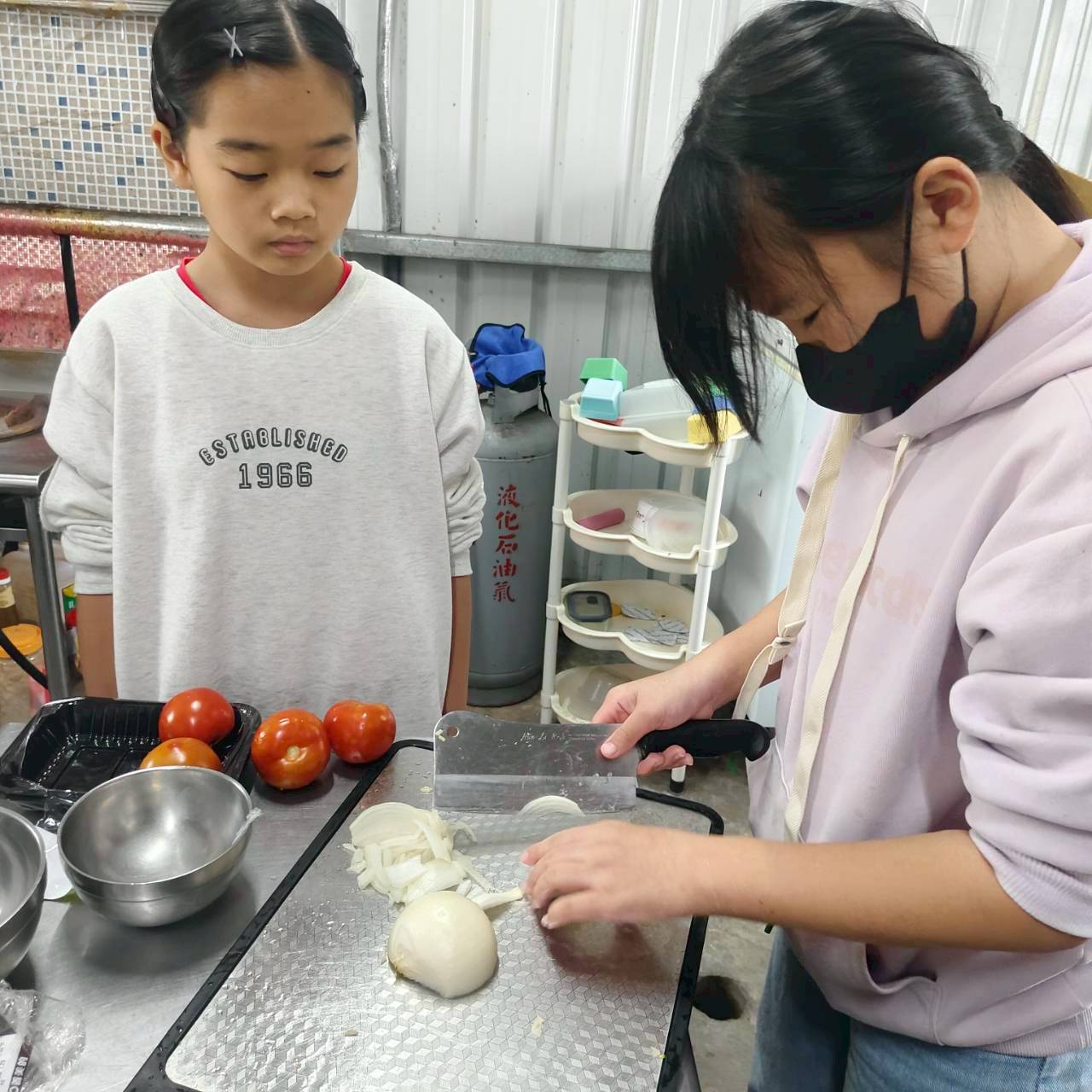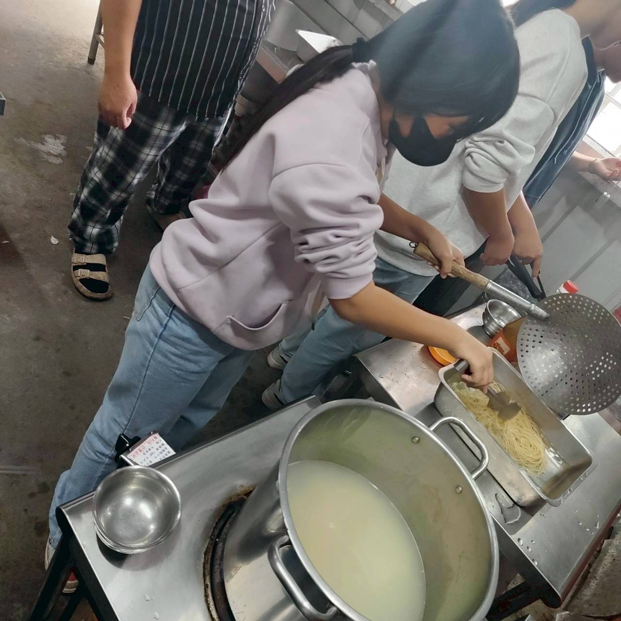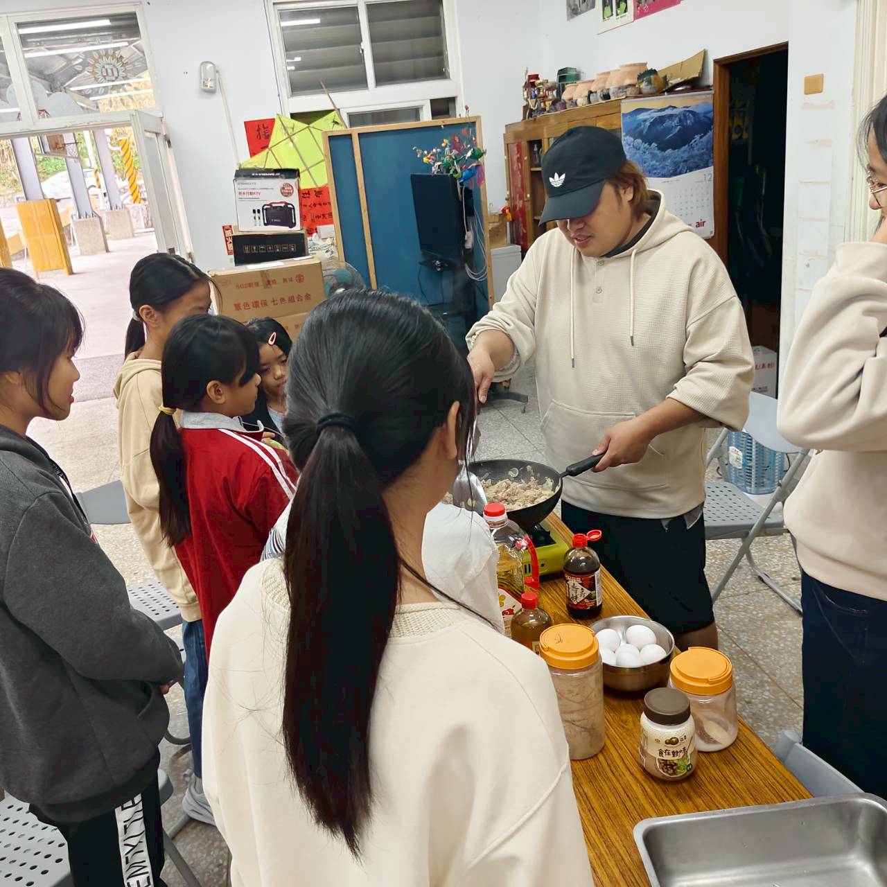 由書屋的 5–6 位國中生(我們的大孩子們),利用冰箱現有的食材,分工合作,負責煮出週六中午所有孩子的簡餐。