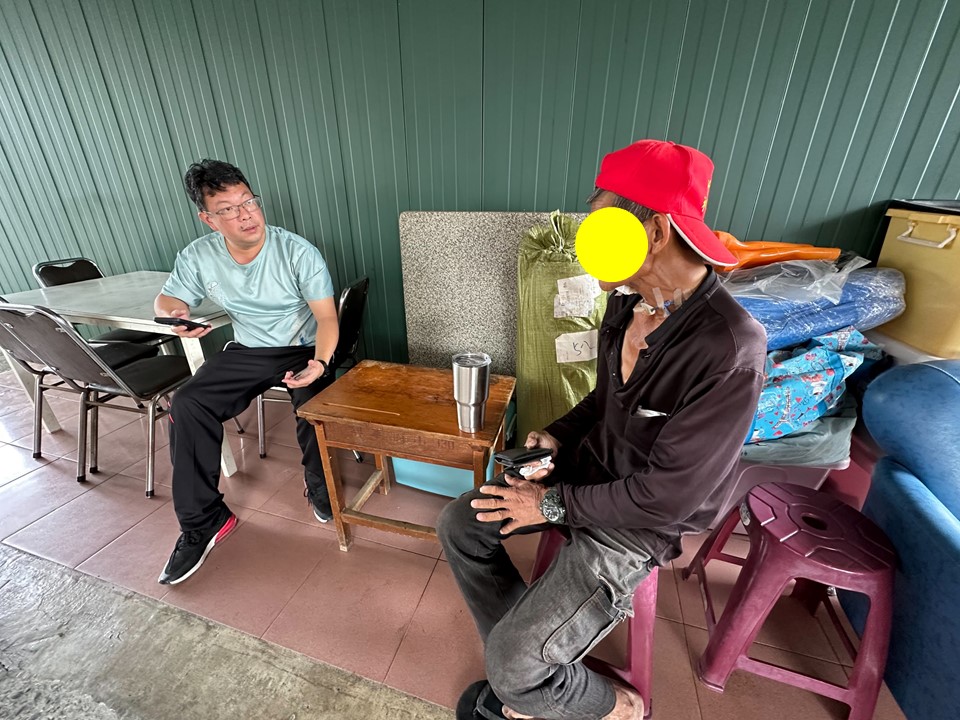 經本會前往訪視評估後,已將案主列為長期關懷戶,並經本會通報後,由屏東遊民收容所正式受理收案。