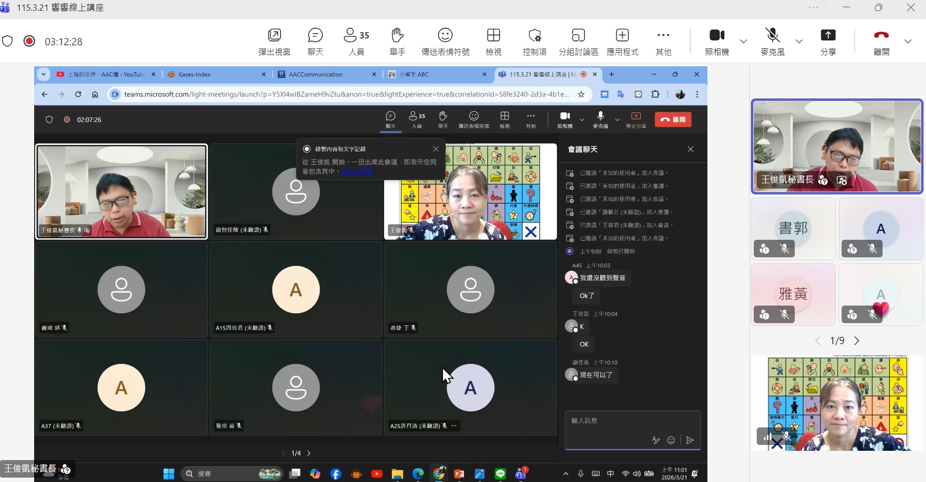 本會王俊凱秘書長受中華民國復健醫學發展協會邀請,線上分享「PECS在早期療育的應用與介入策略」,有來自不同專業領域的學員共同參與,包括:
