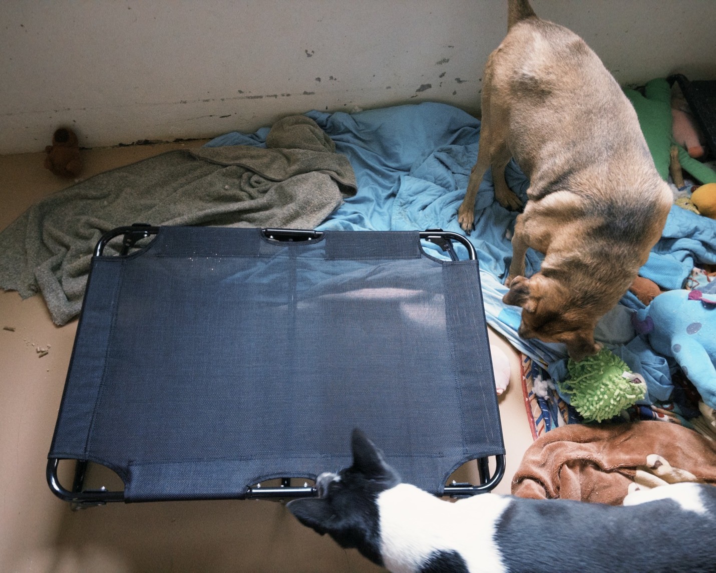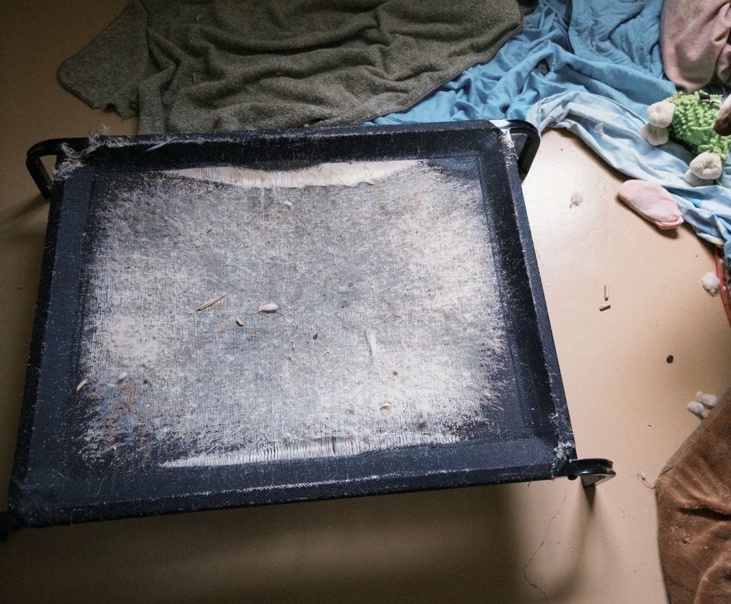 小狗們的床經過歲月跟牙齒的摧殘,已經到很破舊的狀態