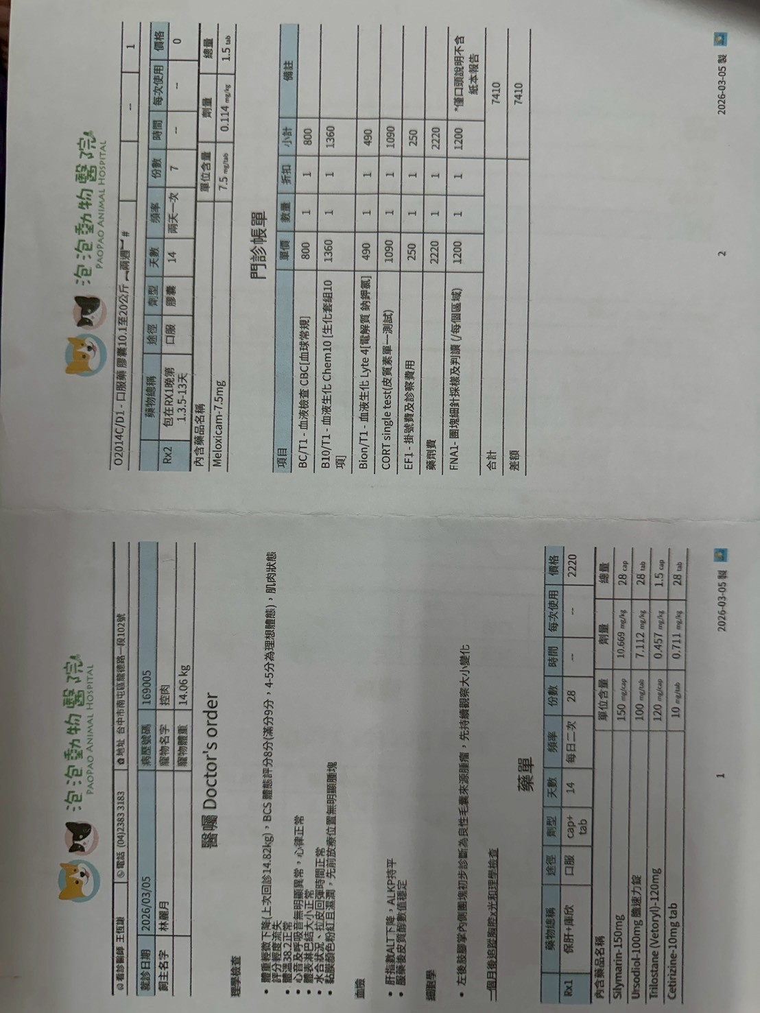 臘腸犬-控肉爺爺,既往診斷為庫欣氏症,需持續接受藥物控制與定期追蹤。本月回診血液檢查結果相關數值顯示,已較前次檢驗改善許多。另也到了眼科回診的追蹤時間~令人欣慰的是,這個月的眼壓測量結果是維護相當的穩定,只要繼續使用醫師開立的眼藥水進行保養、治療,並於六個月後再安排回診追蹤就可以囉!以下是控肉三月份的醫療費用收據。($14430)