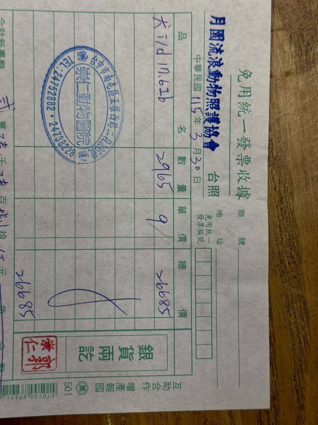 處方飼料是針對患有特定疾病的毛孩們,藉由透過調整營養配分,達到控制、延緩疾病的作用,而園區就有許多重症孩子們須遵照醫囑食用輔助治療,每月大約需至少使用十包以上處方飼料!金額相當高昂!月園非常感謝各方善心人士支持我們的照護理念,慷慨解囊讓園區的毛孩可以一直保有高品質的善終生活,以下是三月份處方飼料的費用收據。($26685)