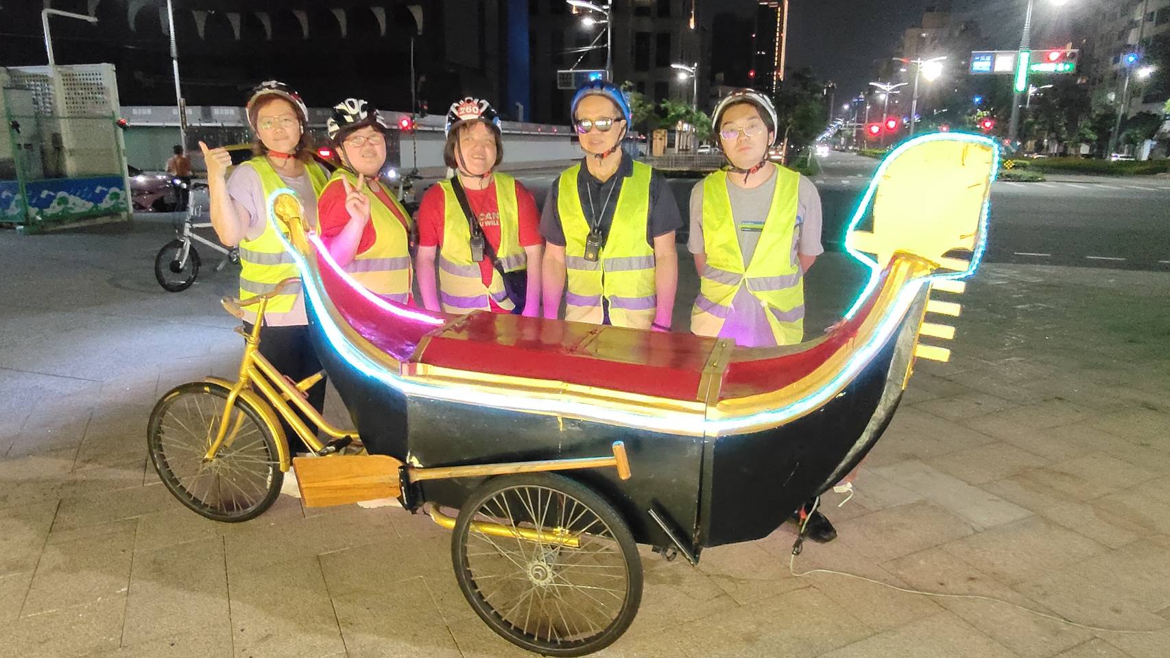 115/3/28 今天原本領騎志工不夠,還好中山大學學生前來幫忙所以沒有開天窗。今天夜騎比較早出發,我們到鹽埕區的長腳麵吃晚餐,結束後我們就騎往鼓山路,再繞到美術館,然後再騎到同盟路往回走,到五福路的時候又在享用一下豆花並做休息,最後在鹽埕區裡逛了一下,順便介紹團員517要表演的地點,然後騎回協會結束今天的活動。