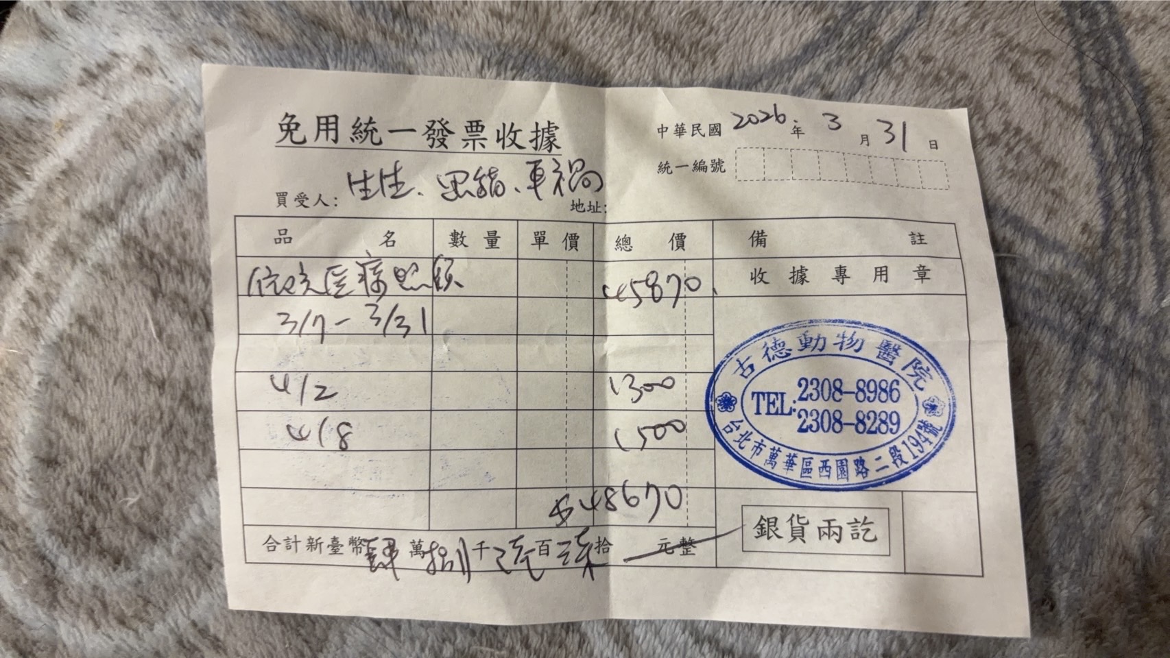 醫療:30,000元 飼料:24,000元 貓砂:25,000元 電費:40,000元 |