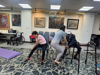 另外,參加者中也有如照片中坐在椅上的會員~一位自己因為長期照顧壓力下,中風了! 一位自己現在是巴金森氏症的患者....