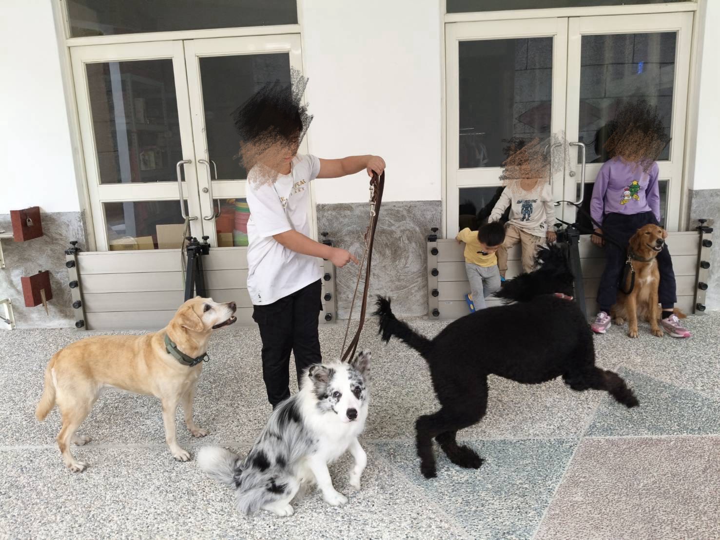 「阿尼色佛」小朋友透過實際互動,練習引導狗狗的方法。