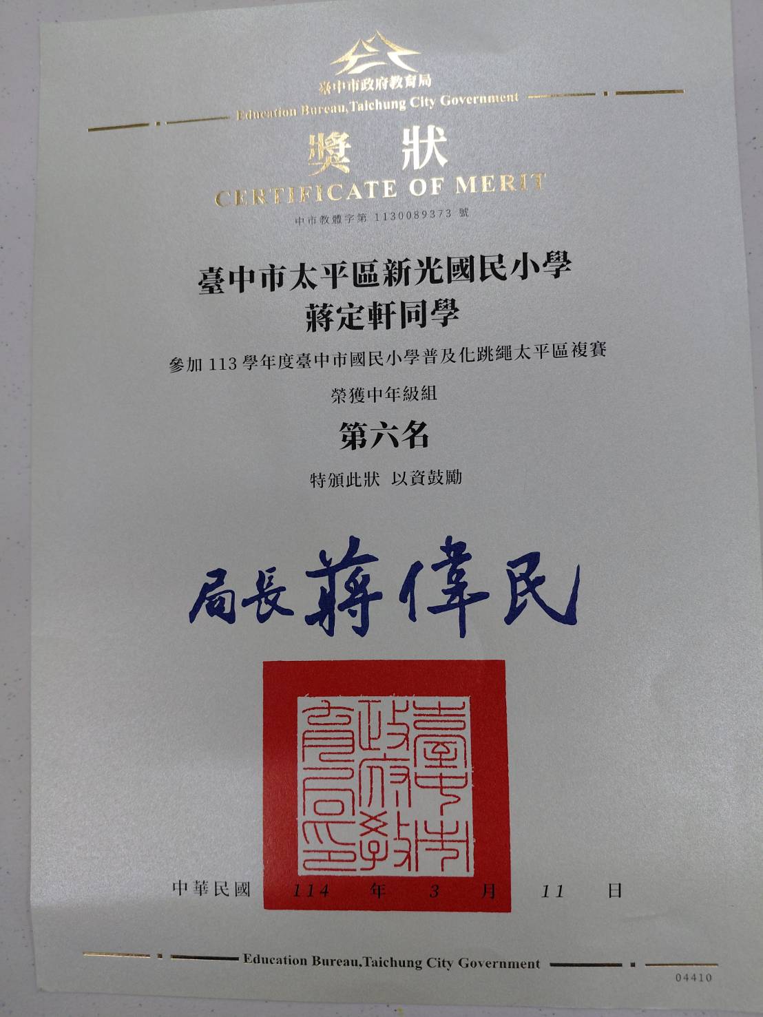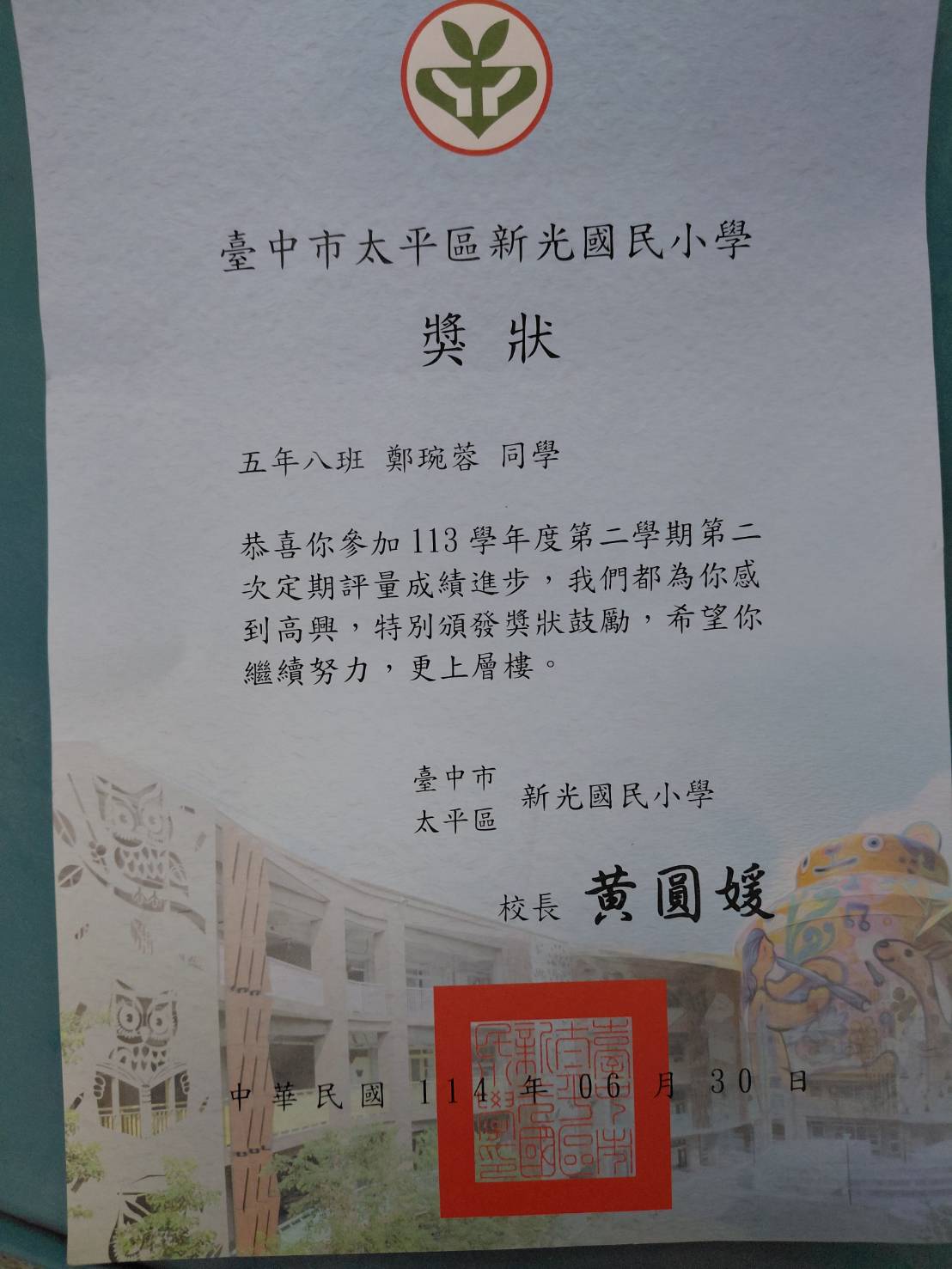 望培養定性;自幼參加比賽成績優異。外祖父母積極配合學校的