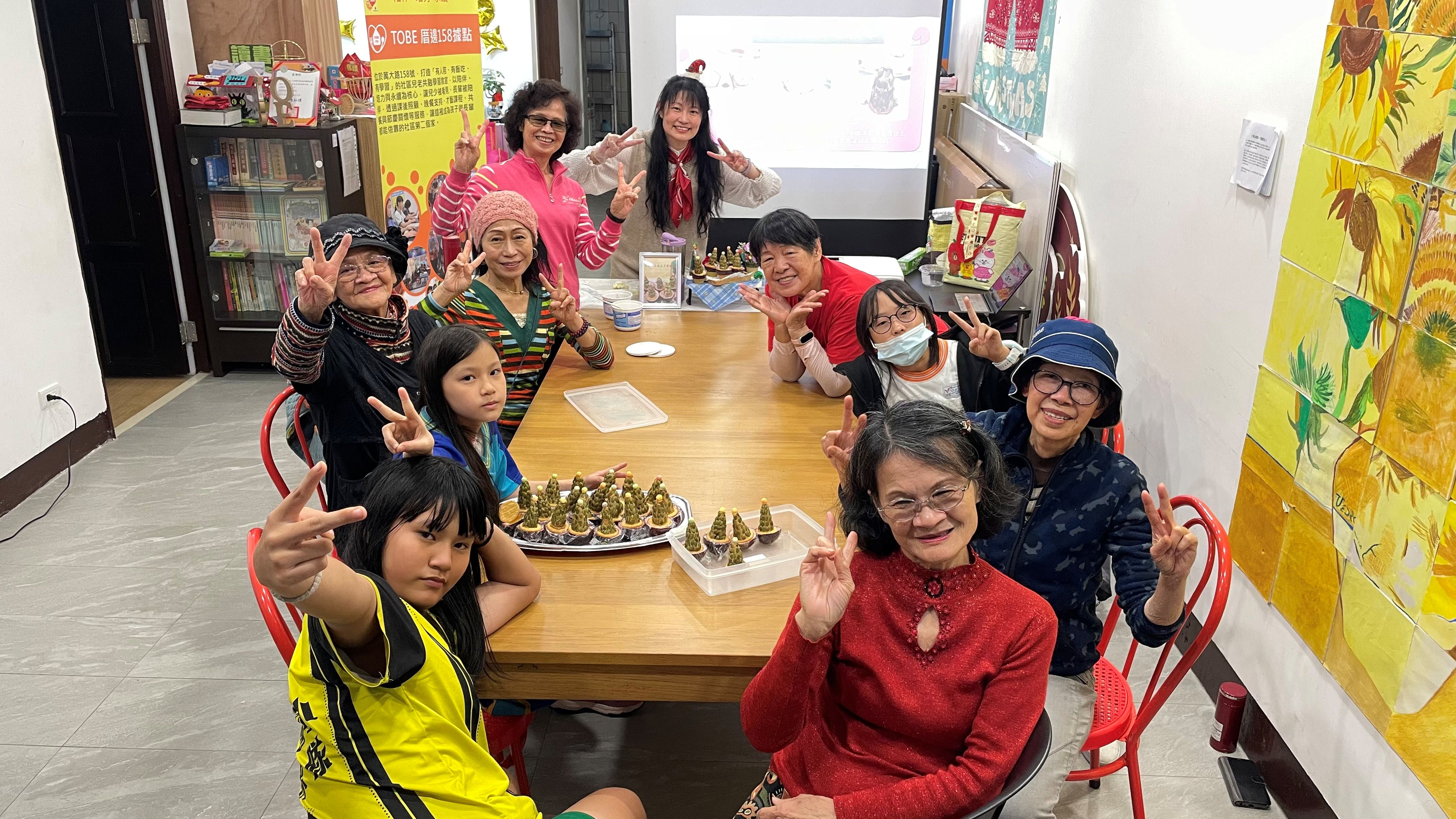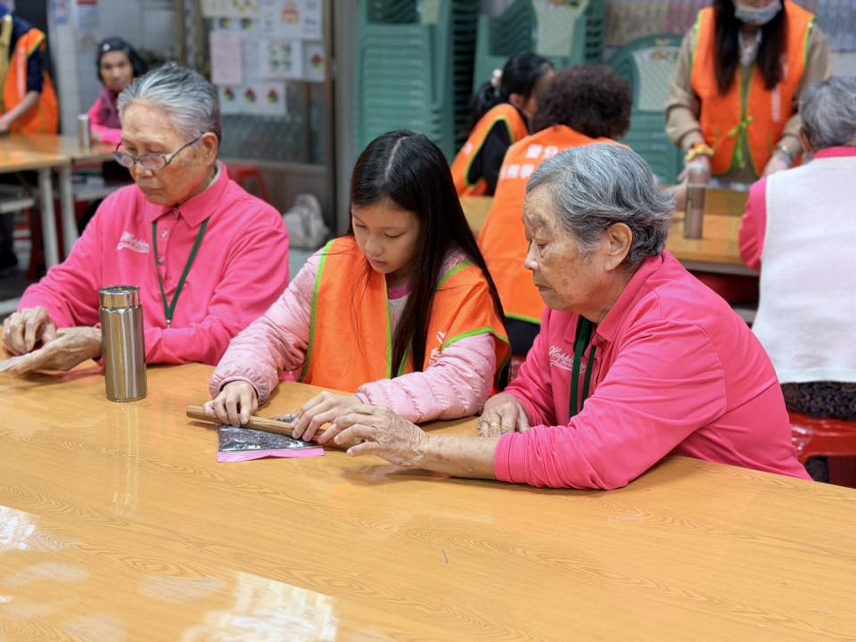 活動中,孩子與長輩一同隨著音樂伸展律動,在歡笑中拉近彼此距離;也一起運用社區種植的香草製作到手香藥膏,從分工合作中學習耐心與體貼。甜點手作時刻,孩子陪伴長輩一步步完成作品,過程中自然地交流、互相協助,留下溫暖而真實的互動畫面。