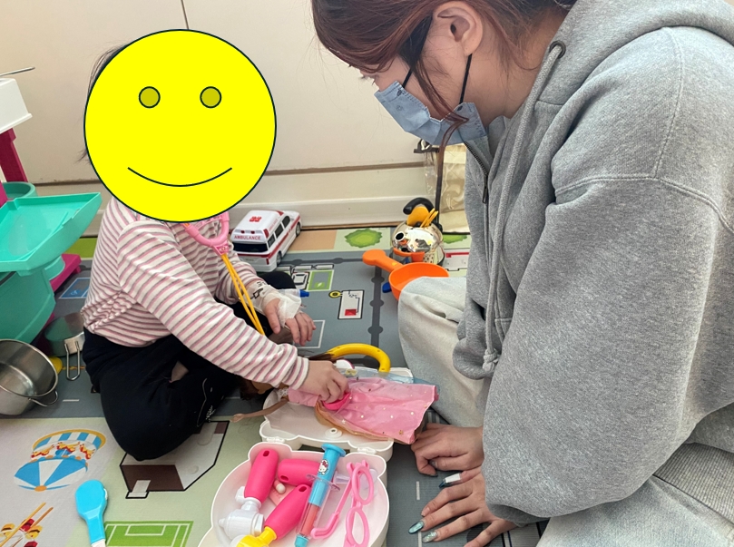 一旁急診室,小小醫生聽到娃娃「受傷」,立刻背起聽診器衝上前!開藥、打針、安撫樣樣來,還給芭比來場VIP全身檢查:聽心肺、查口腔、測膝跳,甚至安排病床!忙了好久才說「芭比快好起來囉」,專業到我們都想掛號~