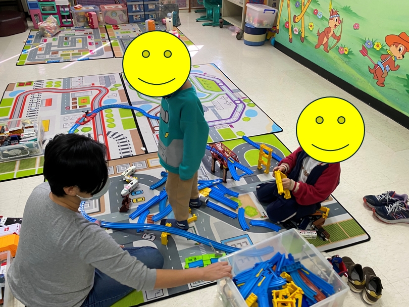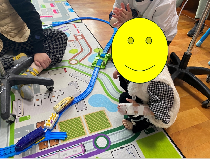 今天最讓我們印象深刻的,莫過於兩位小小建築師與志工們合力打造的「高架鐵路」!看著他們專注地連結軌道,一次次測試火車的運行軌跡,不斷調整、修正,只為讓小火車能順利通過每一個彎道與坡道,那份鍥而不捨的精神,簡直就是小小工程師的縮影。另一位熱愛車子的小朋友,帶來了一場盛大的「車展」!各式各樣的玩具車輛擺滿地墊上,孩子眼中閃爍的光芒,以及興奮地介紹每一台車的模樣,都深深觸動了我們。而最溫馨的畫面,則是一位孩子與媽媽共同在「魔法廚房」裡,用積木和玩具食材「烹飪」出一道道美味佳餚。孩子戴著小廚師帽,有模有樣地「切菜」、「炒菜」,媽媽則在一旁溫柔地引導與陪伴。這不僅是一場角色扮演遊戲,更是親子間情感交流的珍貴時刻。這些美好的瞬間,都離不開我們最可愛、最有愛的志工們!是他們無私的奉獻,用耐心、創意和愛心,陪伴著孩子們度過醫院裡的時光。