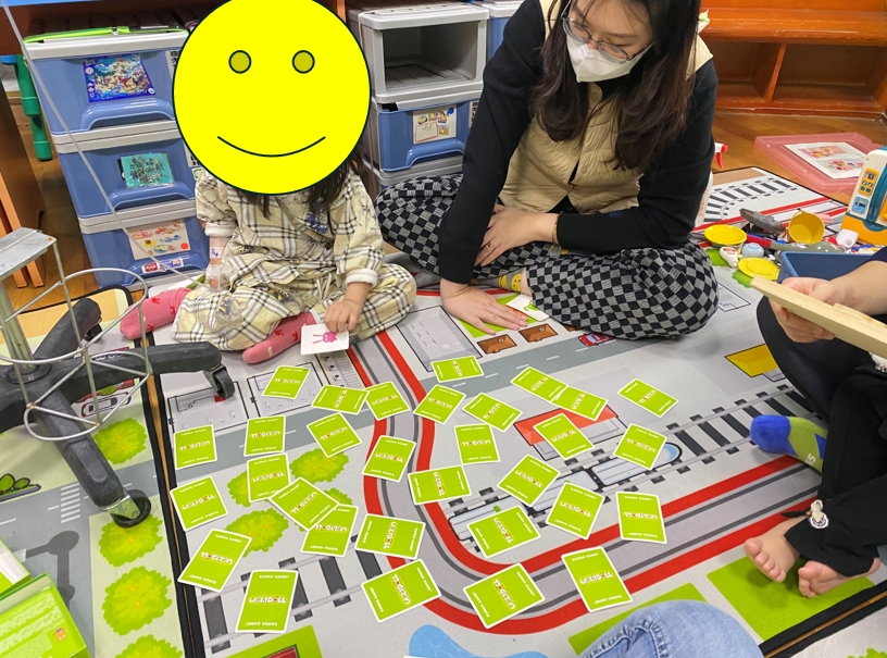 首先,一位低頭寫作業的小弟弟,一聽到「來玩遊戲囉~」,眼睛瞬間亮起來!飛快完成作業,衝到地墊上跟我們瘋玩桌遊!從拉密的策略大亂鬥、UNO的顏色大作戰,到心臟病的驚險拍手,大家絞盡腦汁想出絕招,現場笑鬧不停!不到最後都不知道贏家是誰?