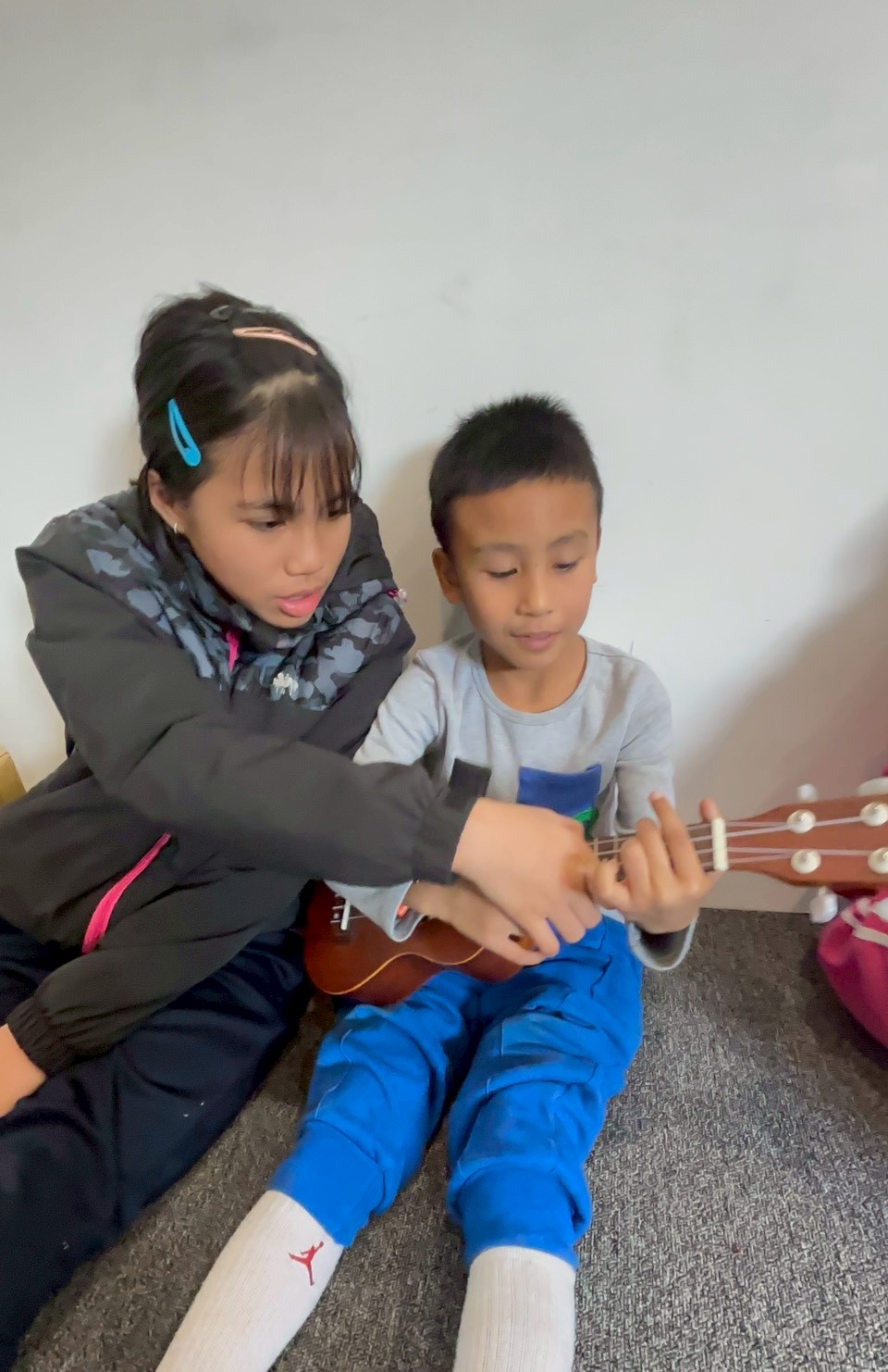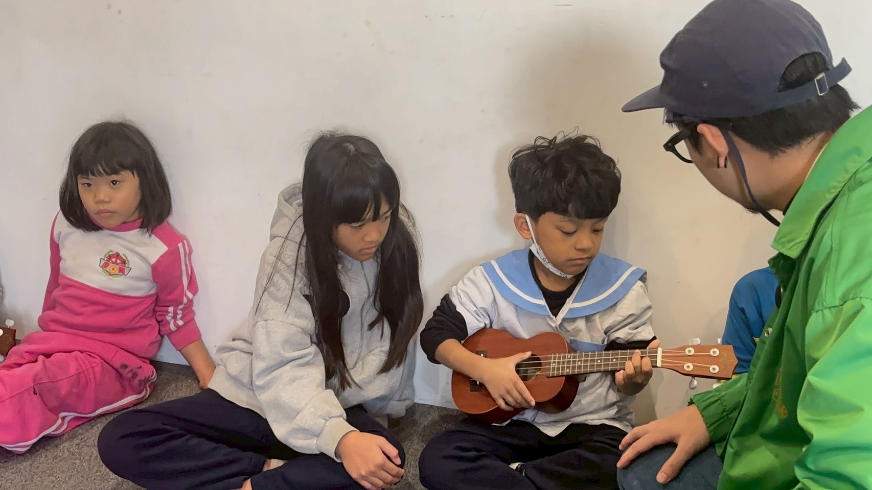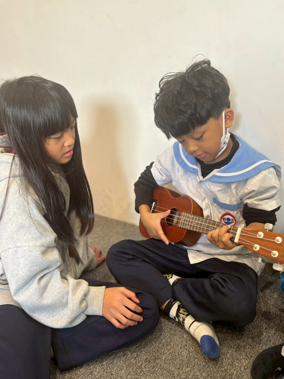 同時也安排烏克麗麗學習,由大朋友帶領小朋友一起練習彈奏,在音樂中建立彼此的連結,學習互相幫助與合作。