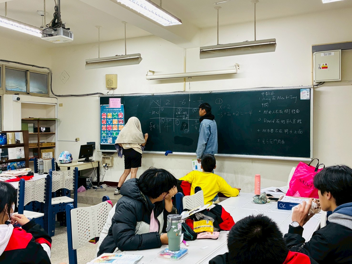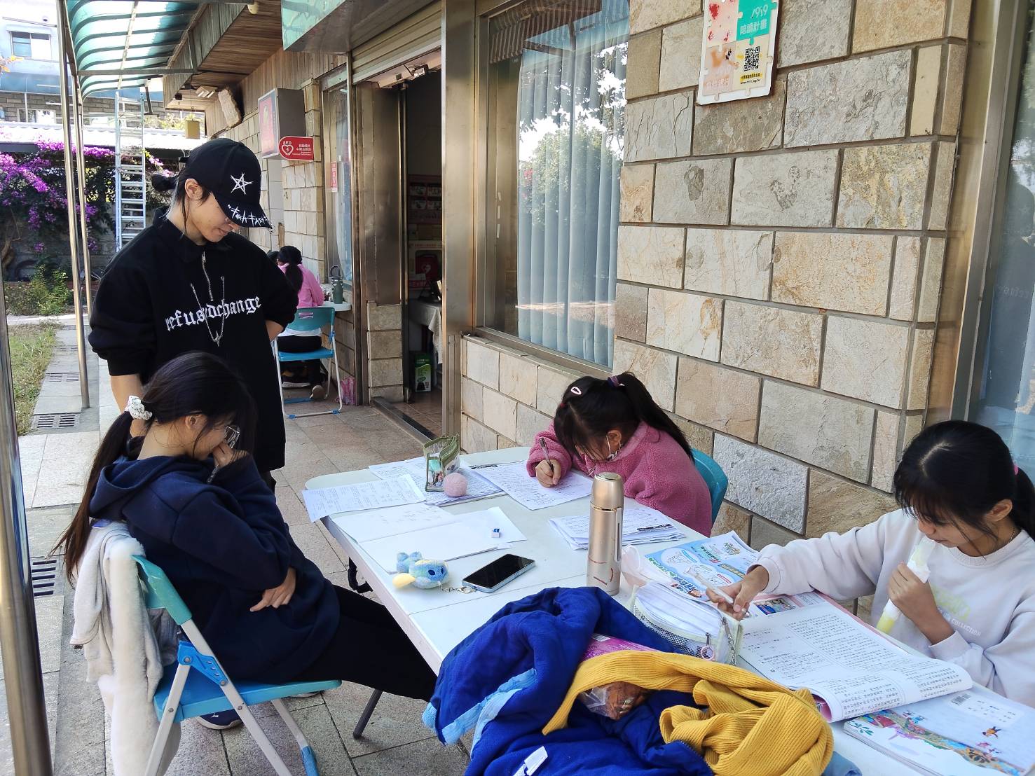 週末的品格課調整為加強班,協助國小生寫寒假作、幫國中準備期末考。
