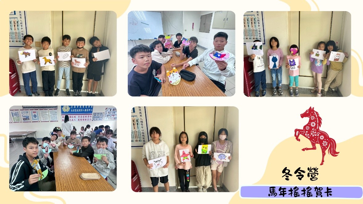 冬令營正式展開,小天使們迎來第一個暖心任務──親手製作專屬的「馬年搖搖賀卡」。小天使們發揮滿滿創意,挑選喜歡的圖案與顏色,一筆一畫寫下最真誠的祝福。