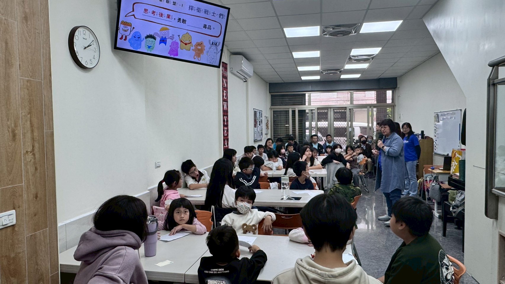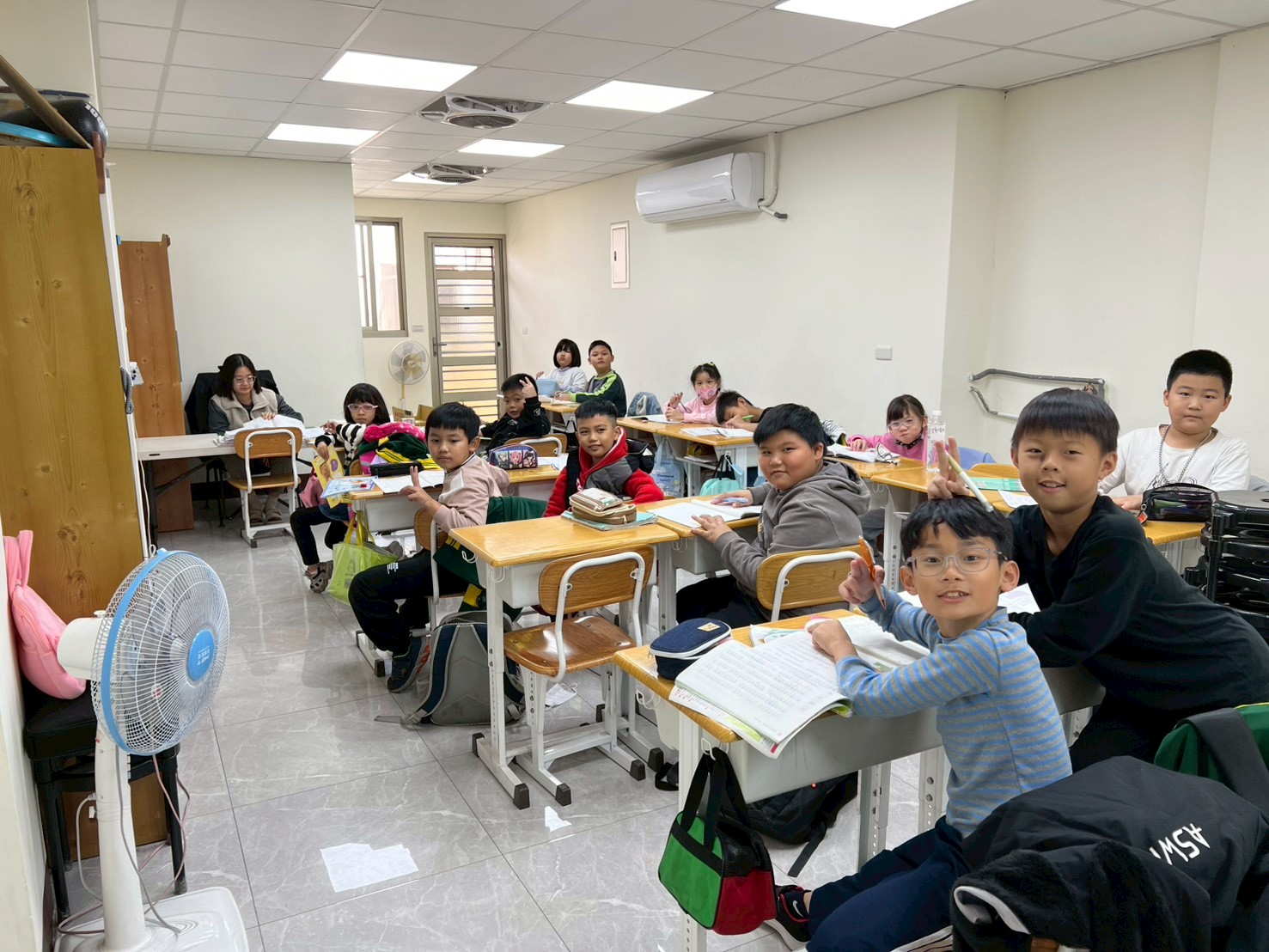 課輔班裡,有孩子為了一題數學題苦惱,也有孩子突然舉手分享一個冷笑話,逗得全班哈哈大笑。