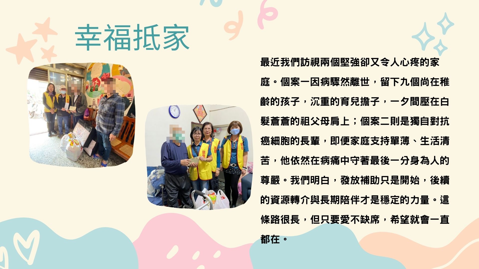 我們在第一時間完成家訪並遞上急難救助金,希望能化作一場及時雨,先為他們緩解燃眉之急。救助金的發放只是起點,後續的資源轉介與長期支持體系已全面啟動。