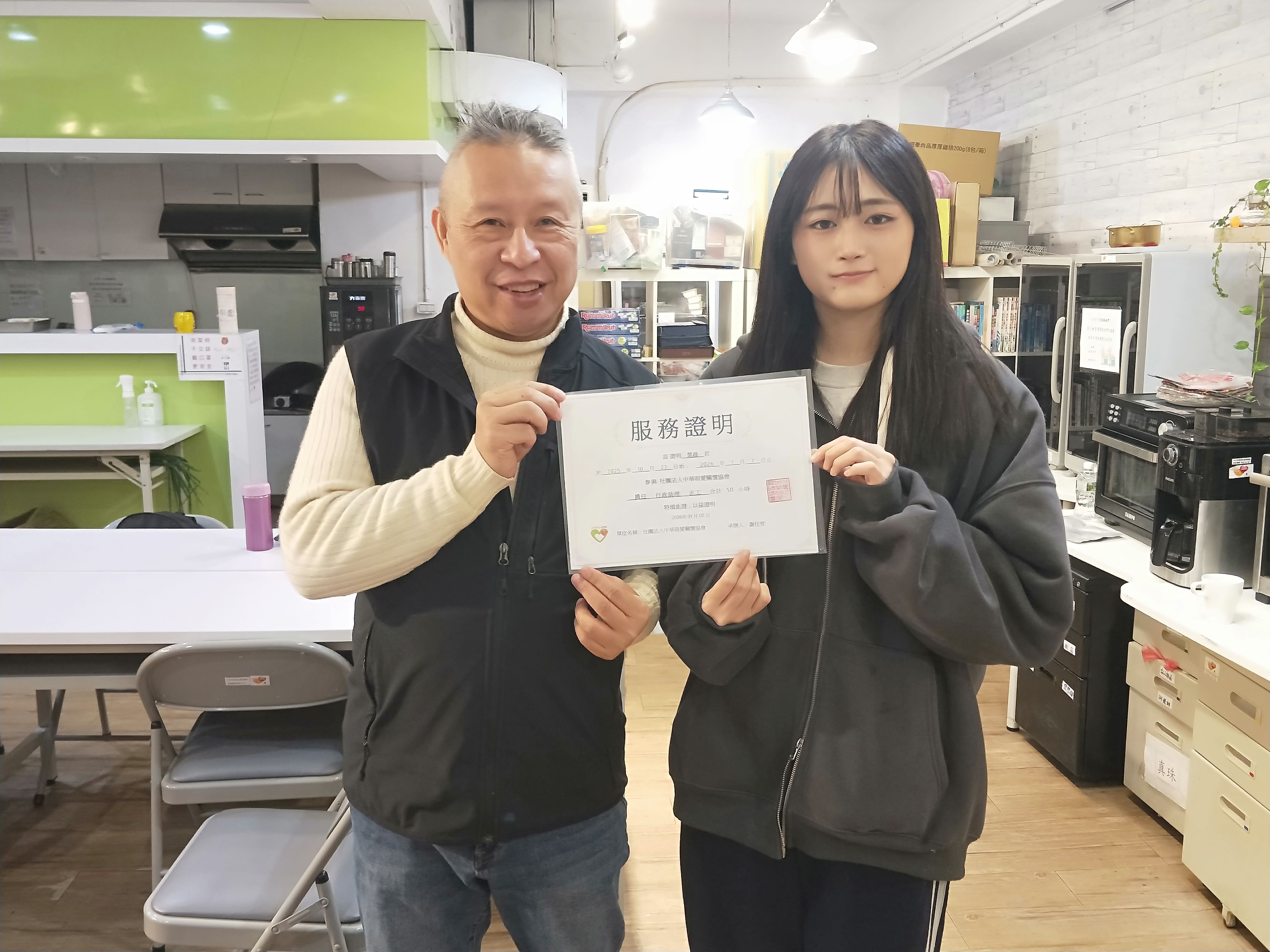 很開心可以參與這次的志工服務,也認識到中華萌愛關懷協會,接觸了不同的人事物。這段時間主要擔任行政助理的角色,工作內容多半是一些簡單的美編協助,像是經營粉絲專頁或是寫一些文章分享,雖然不是很複雜,但需要細心與耐心,也讓我更熟悉實務上的行政流程。除了行政工作,偶爾也會陪長輩們一起上課。過程中我感受到他們的熱情與認真,也常常可以看到長輩們聚集在一起唱歌聊天或是會煮東西一起吃,我覺得這樣的氣氛很棒。整體而言,這次志工服務讓我有了不一樣的體驗,而且大家人都很好很熱心幫忙,如果之後有空閒時間的話我會有意願再去當志工。