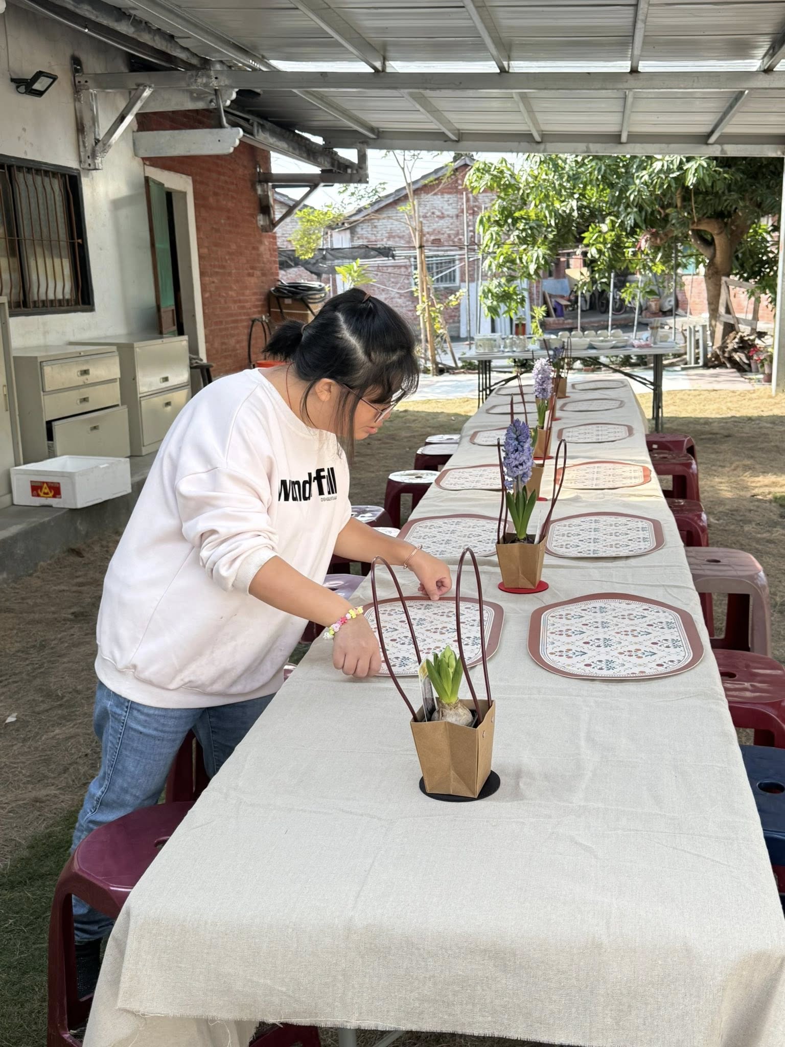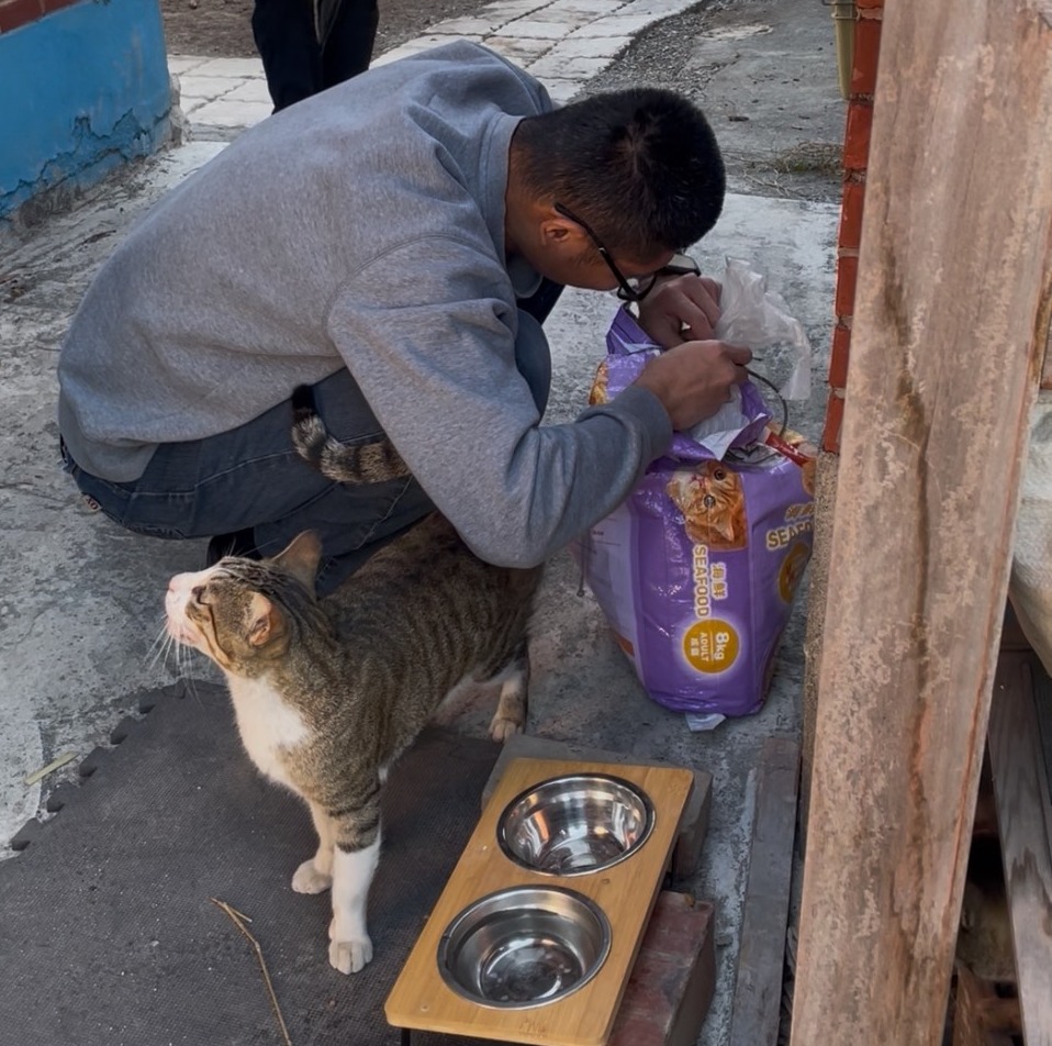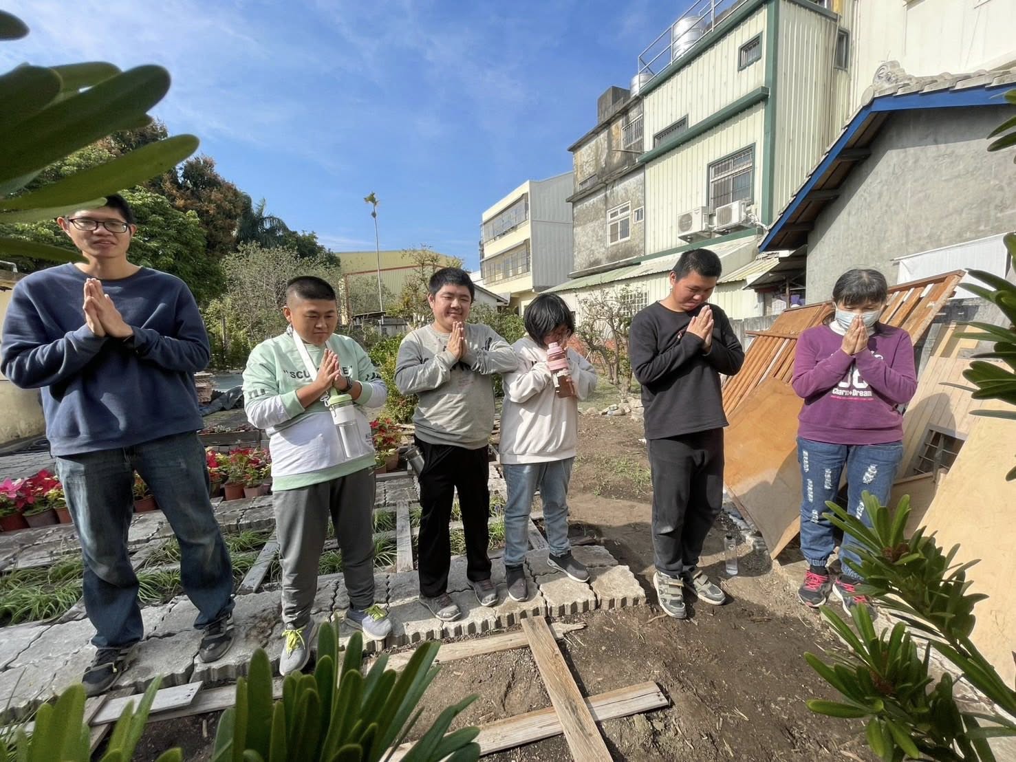 有的學員負責澆花,有的開始擺設工作桌;有人記得先去餵貓咪、換水,也有人主動拔草、整理環境