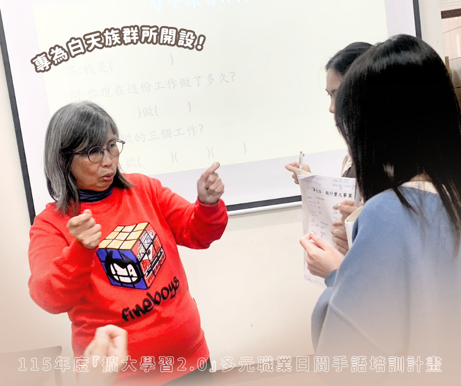 去年白天班課程獲得學員熱烈回饋,也讓我們在實際辦理過程中,看見許多白天時段有學習手語需求,卻較少資源可參與的學員,