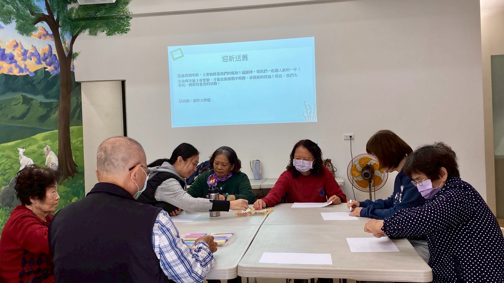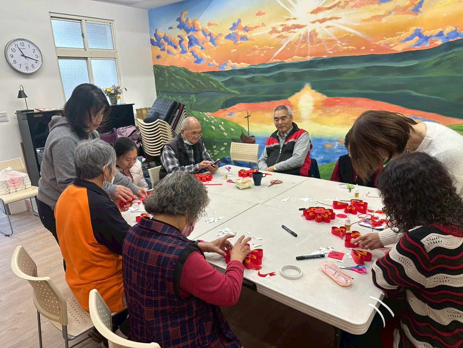 適逢新春交替,講師特別設計了「迎新送舊」主題繪畫活動。這不僅是一場藝術創作,更是一次深刻的生命教育。長輩們在彼此的畫作上互相留下誠摯的祝福,並藉此契機共同思考、分享在過往歲月中,那些曾對自己生命產生深遠影響的人物。透過這份連結,長輩們在互助與共融的氛圍中,感受到生命的傳承與溫暖。此外,我們也進行了「手作新年吊飾」活動,讓長輩將這份對新年的期許化作精緻飾品,為自己與家人送上最實質的祝福。