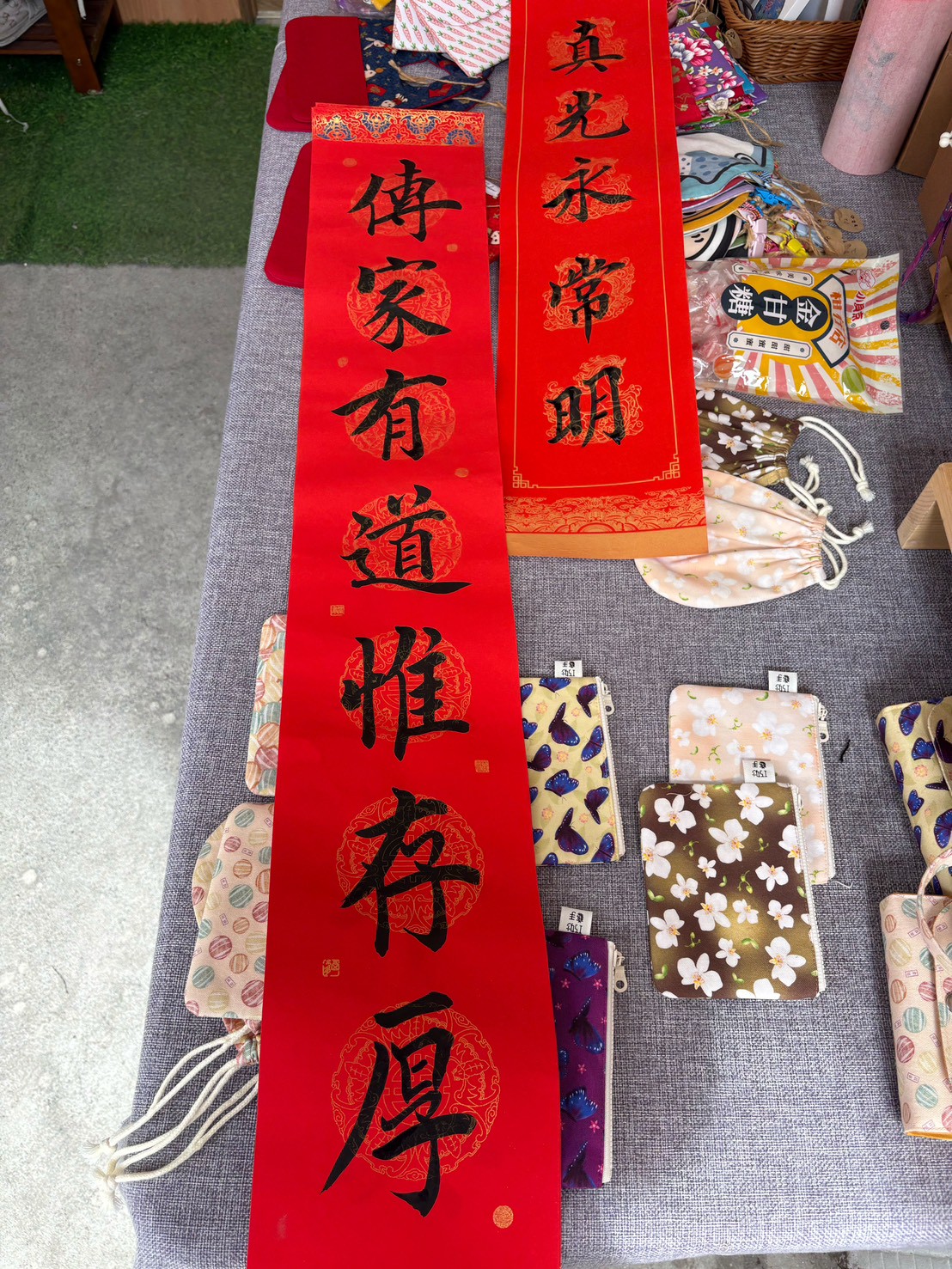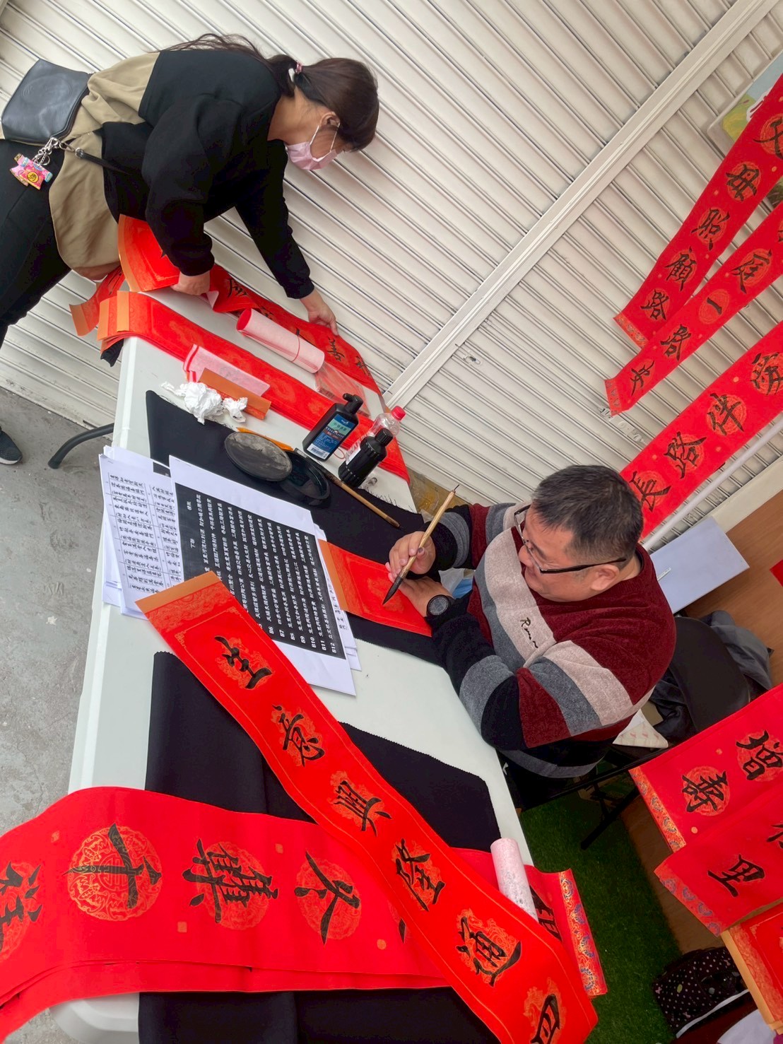路過的左鄰右舍看到老師的俊秀的字體,也都紛紛前來請老師揮毫,沾沾春節的喜氣,