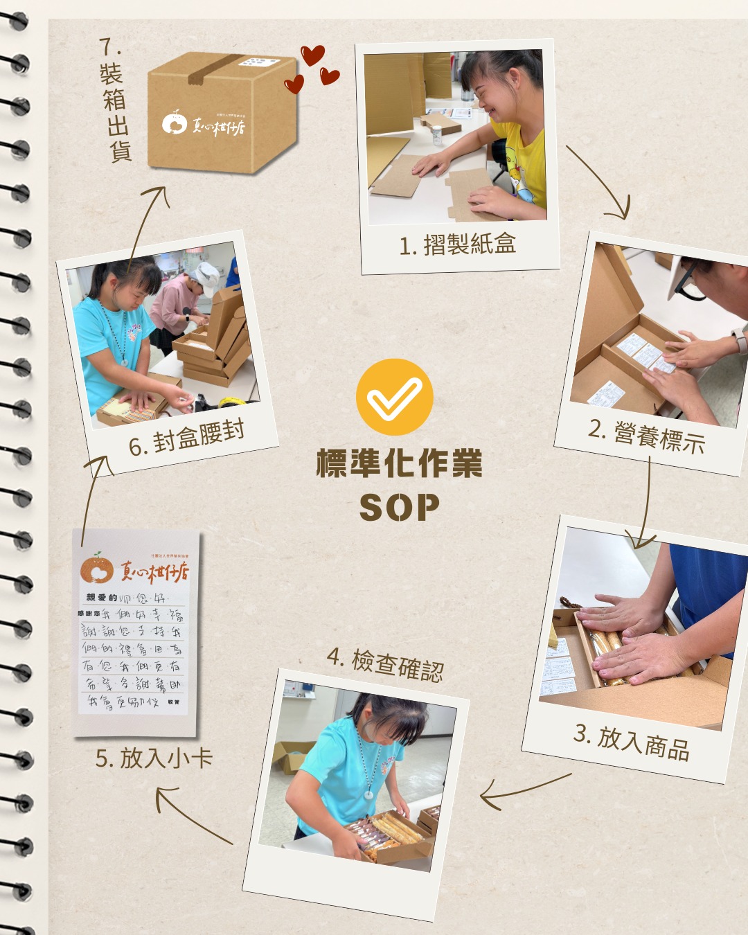 公益禮盒的組裝、包裝、檢查與整理流程,
