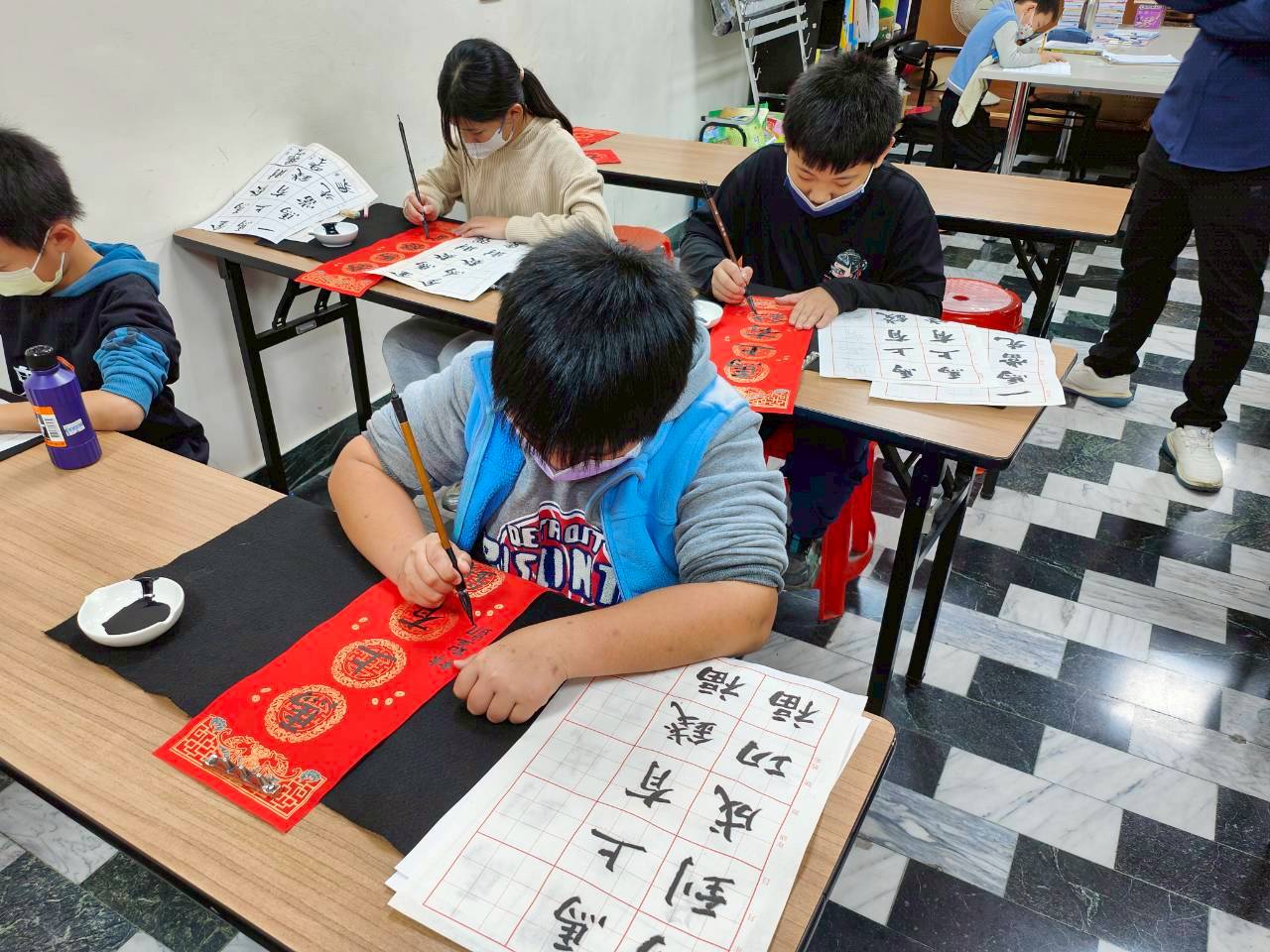 書法課是本會相當重視的一門課,不僅可以幫助學生靜下心來,更重要的是在兒少發展和社工領域,我們看重書法帶來的效益,對於正處於發育期的國小生,書法是一項極佳的手眼協調訓練,對於手部肌肉張力較弱或動作協調不佳的孩子(如自閉、過動)帶來精細動作控制、專注力的提昇。本月書法老師為了即將到來的春節,準備了許多春聯讓孩子們試著寫出自己的春聯。