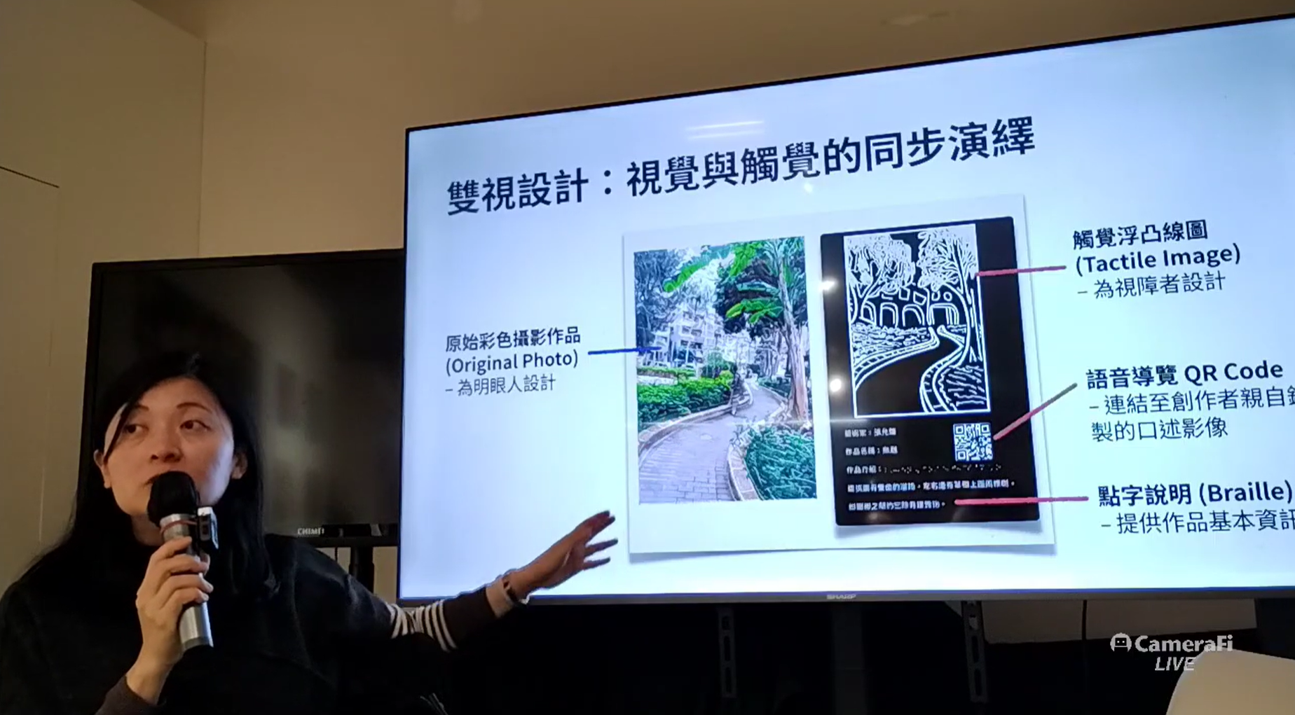 講座詳細介紹了為視障者設計的八堂攝影課流程,強調「觀念、技巧與操作」的連貫性,創作不只是按下快門,而是完整的感官轉譯過程::