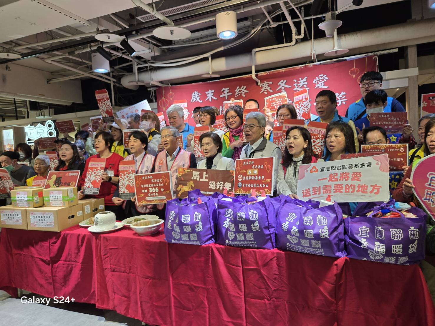 許多會員領取了紫色的**「宜蘭聯勸幸福暖袋」**,內含豐富的民生物資,讓這個冬天不再寒冷。