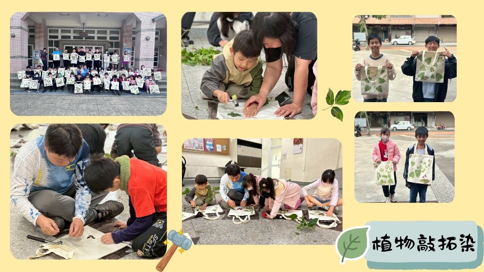 雖然動作看似簡單,但要敲出一片 「完美拓印」 的葉子,需要的是耐心與專注。看著小天使們將喜歡的植物放在袋子上,一槌一槌地將葉綠素深深印入纖維中,那份專注的神情真的好迷人。