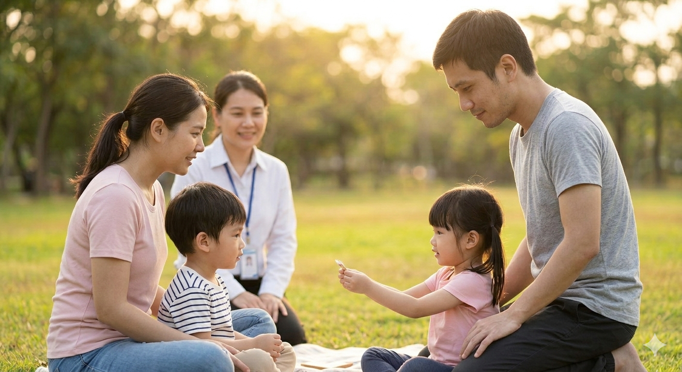 在社工陪伴與專業服務的支持下,阿風開始學習情緒調節與非暴力溝通,鬆動根深蒂固的專制思維,真誠向家人道歉並承諾改變。透過諮商與團體課程,他一點一滴重建信任。看見他的努力與轉變,妻子與孩子願意在社工的協助下重新靠近,一家人開始慢慢修復關係。