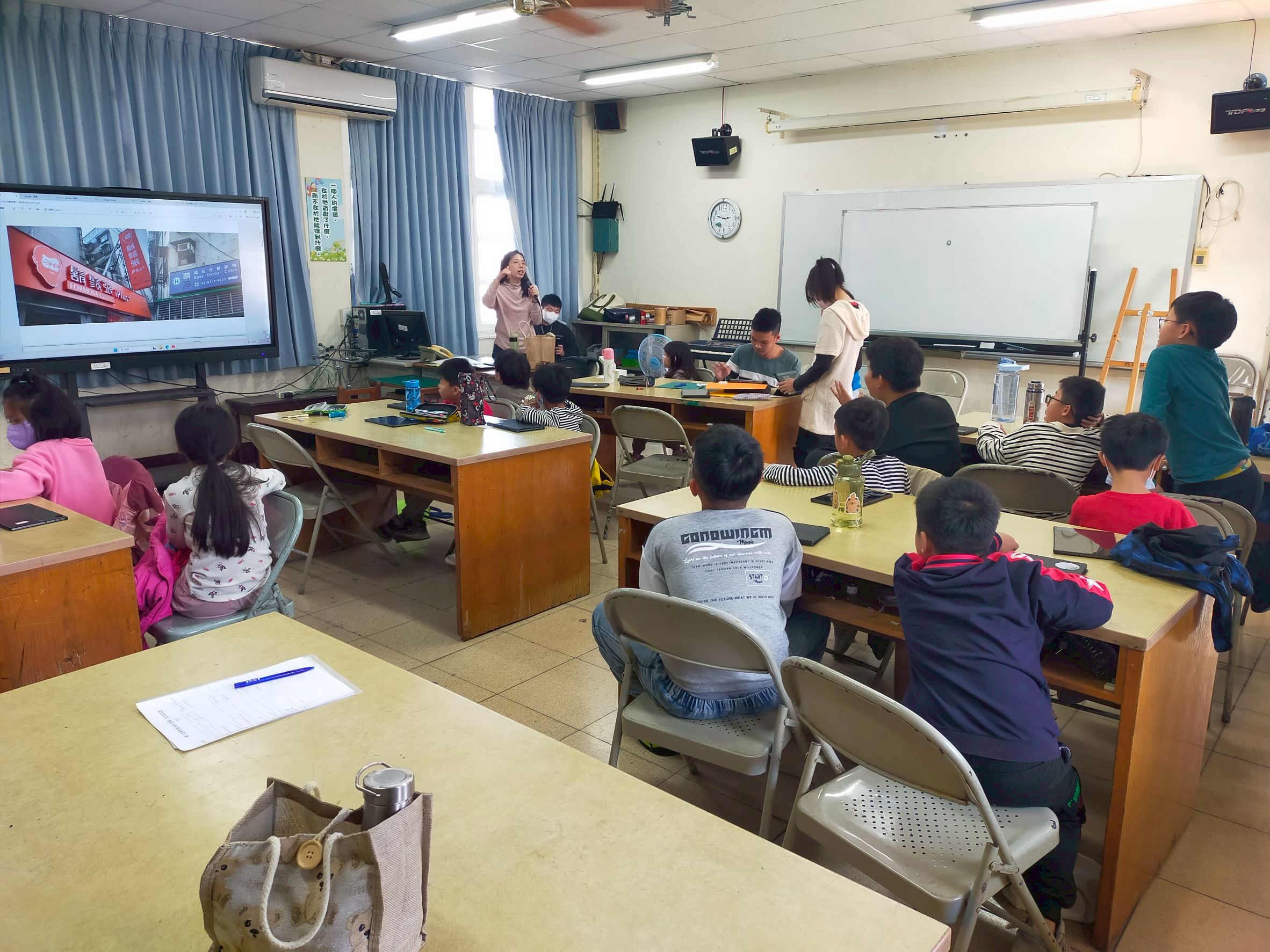 在文書處理課程中,孩子們從零開始學習註冊帳號、認識數位工具,進一步操作設計平台,親手製作屬於自己的名片。從輸入名字、設計版面,到發揮創意寫下「我的超能力」,有的孩子寫下「講笑話高手」、有的說自己會「吹出最大泡泡」、還有人自豪地寫著「睡覺睡很久」。透過AI創作與設計,他們不只是完成一張名片,更是在探索自我、建立自信。當孩子們拿著自己設計的作品,眼中閃耀的光芒,是對自我價值的肯定,也是數位素養向下扎根的開始。