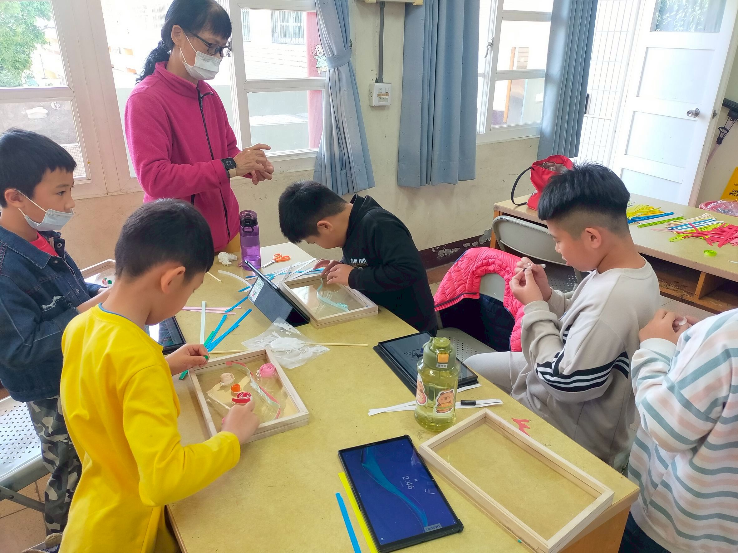 藝術創作課程讓孩子們走進想像的世界。運用粉彩紙與空間構圖,每一雙小手都化為創意的魔法棒。簡單的線條、繽紛的色彩,在透明畫框上拼貼出獨一無二的笑臉與圖像。陽光透過作品灑落,孩子們的創作彷彿與自然對話,展現出純真與無限可能。藝術,不只是美感的培養,更是情感的抒發與心靈的療癒。