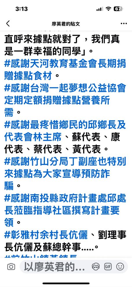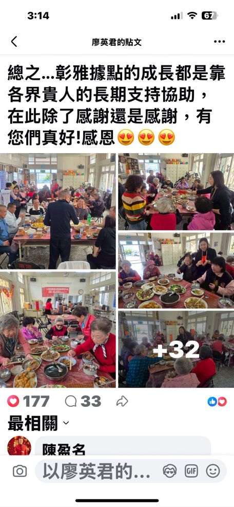 據點志工每天接送長輩上下課 據點社群的感恩PO文 吐司、起司是今天的點心