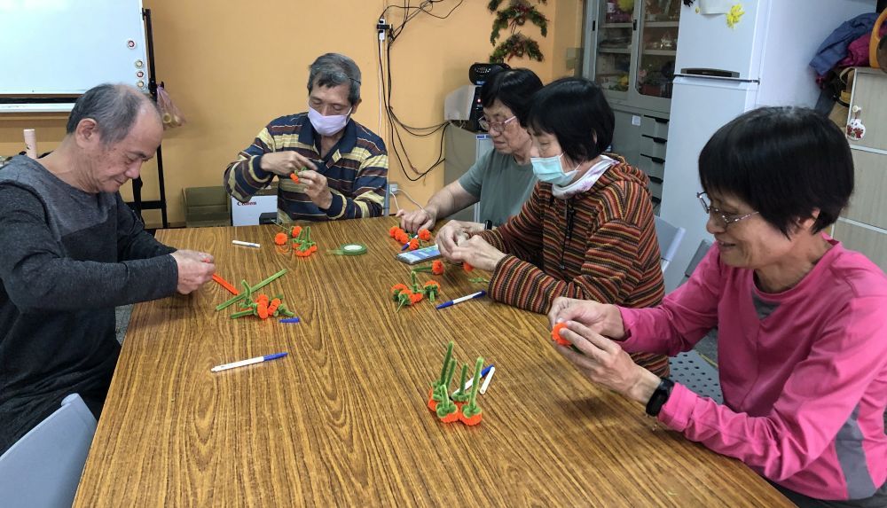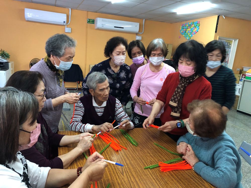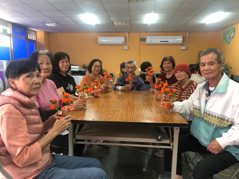 充滿年節氛圍的創意課程,特別為樂齡長輩設計,以喜氣紅色與吉祥元素為主軸,製作象徵好運與圓滿的「事事如意」作品,透過春節意象結合手作創意,讓長輩在歡樂氣氛中迎接嶄新的一年,課程運用毛根、小花盆、金蔥線、鐵絲、紅果裝飾等素材,製作如意造型或柿子造型(象徵事事如意),搭配「福」字與春聯元素點綴。老師細心示範製作步驟,從塑形、搭配組合裝飾,引導長輩完成專屬的新年祝福作品,過程中可訓練手部精細動作與專注力,促進手眼協調與腦部活化,在歡笑與交流中,每位長輩都完成獨一無二的年節作品,不僅可作為居家擺飾增添喜氣,也能送給家人傳遞祝福。