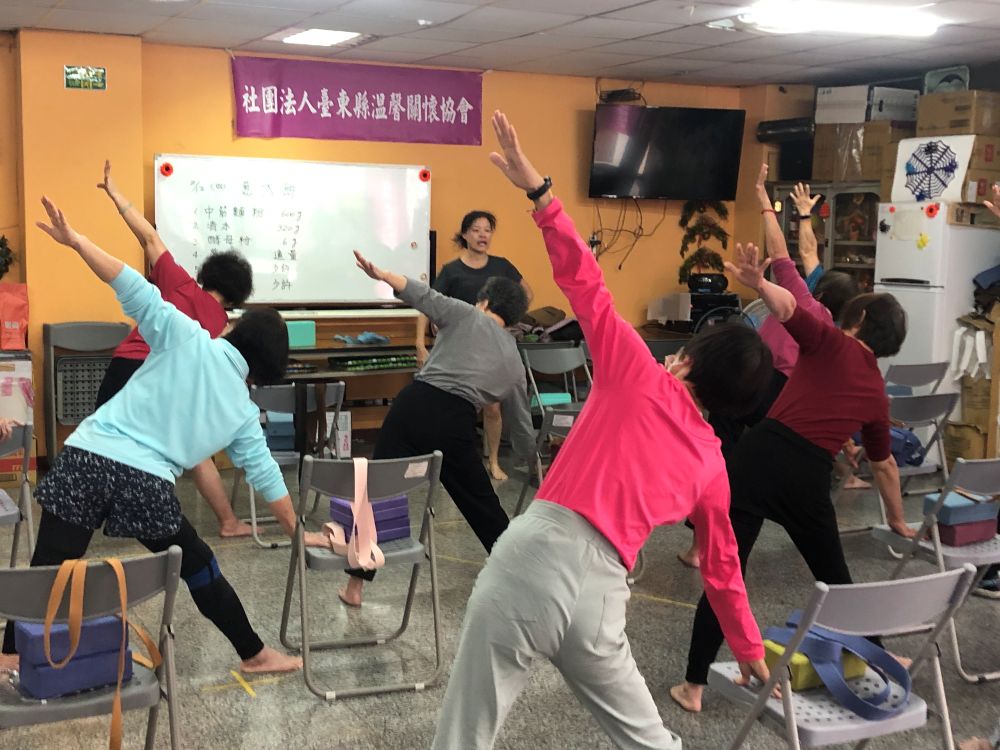 銀髮瑜伽是一門專為樂齡長輩設計的溫和伸展課程,透過安全、舒緩且循序漸進的動作,幫助長者提升身體柔軟度與肌力,增進平衡感與關節活動度,課程以坐姿與輔具瑜伽為主,搭配深層呼吸練習與放鬆冥想,讓長輩在輕鬆自在的氛圍中舒緩肩頸僵硬、改善下肢無力與身體痠痛等問題,在專業老師的引導下,學員依個別狀況調整動作強度,確保安全並建立自信心,課堂中也鼓勵彼此互動與分享,營造溫馨支持的團體氛圍,不僅強化身體機能,更促進心理健康與社交參與,透過規律練習,長輩能提升日常生活自理能力,減緩退化速度,培養穩定情緒與正向心態。