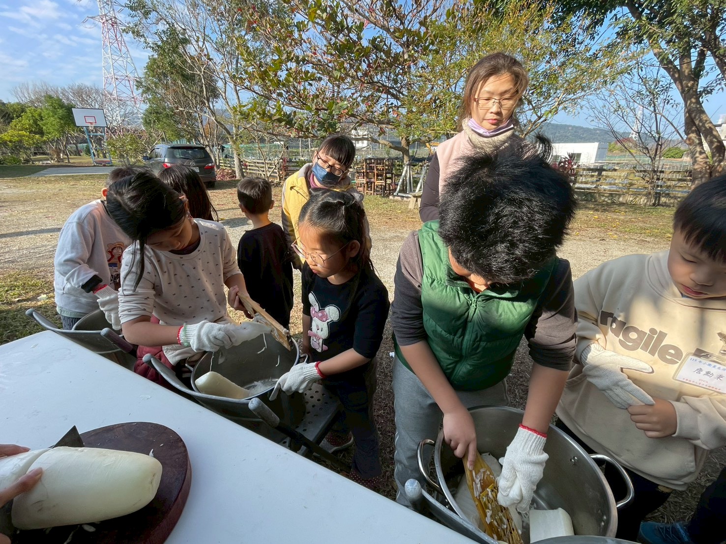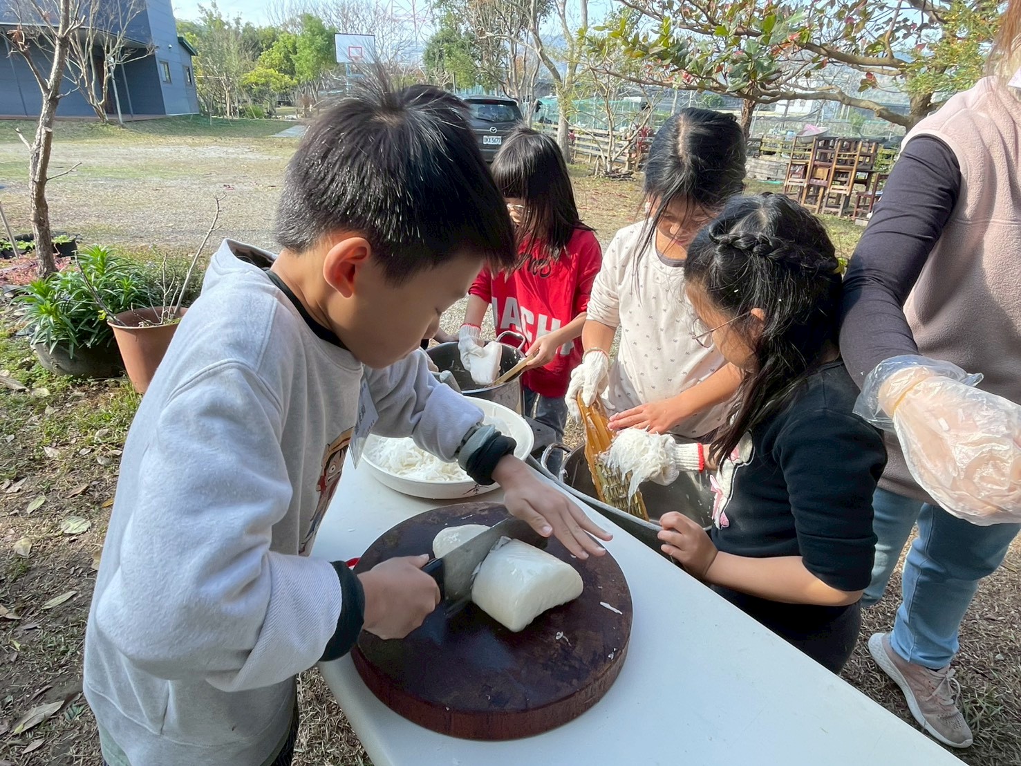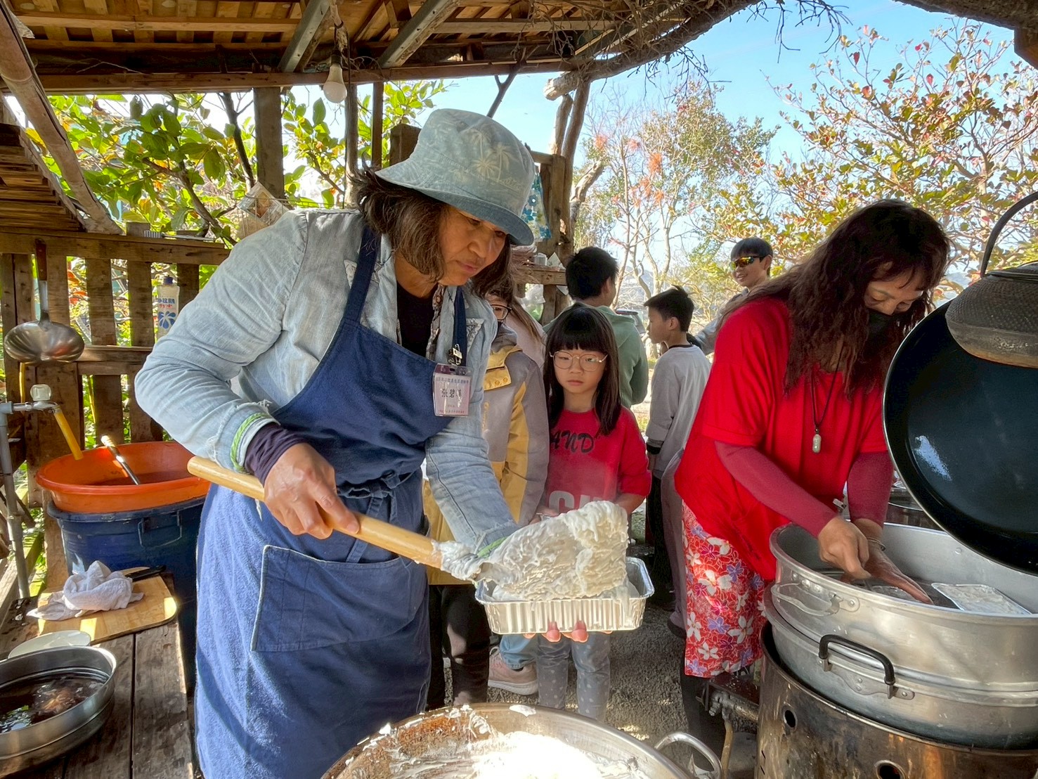 從削皮、刷絲、磨米漿、調味拌料,孩子們帶著新奇又專注的眼神,認真完成每一個步驟。